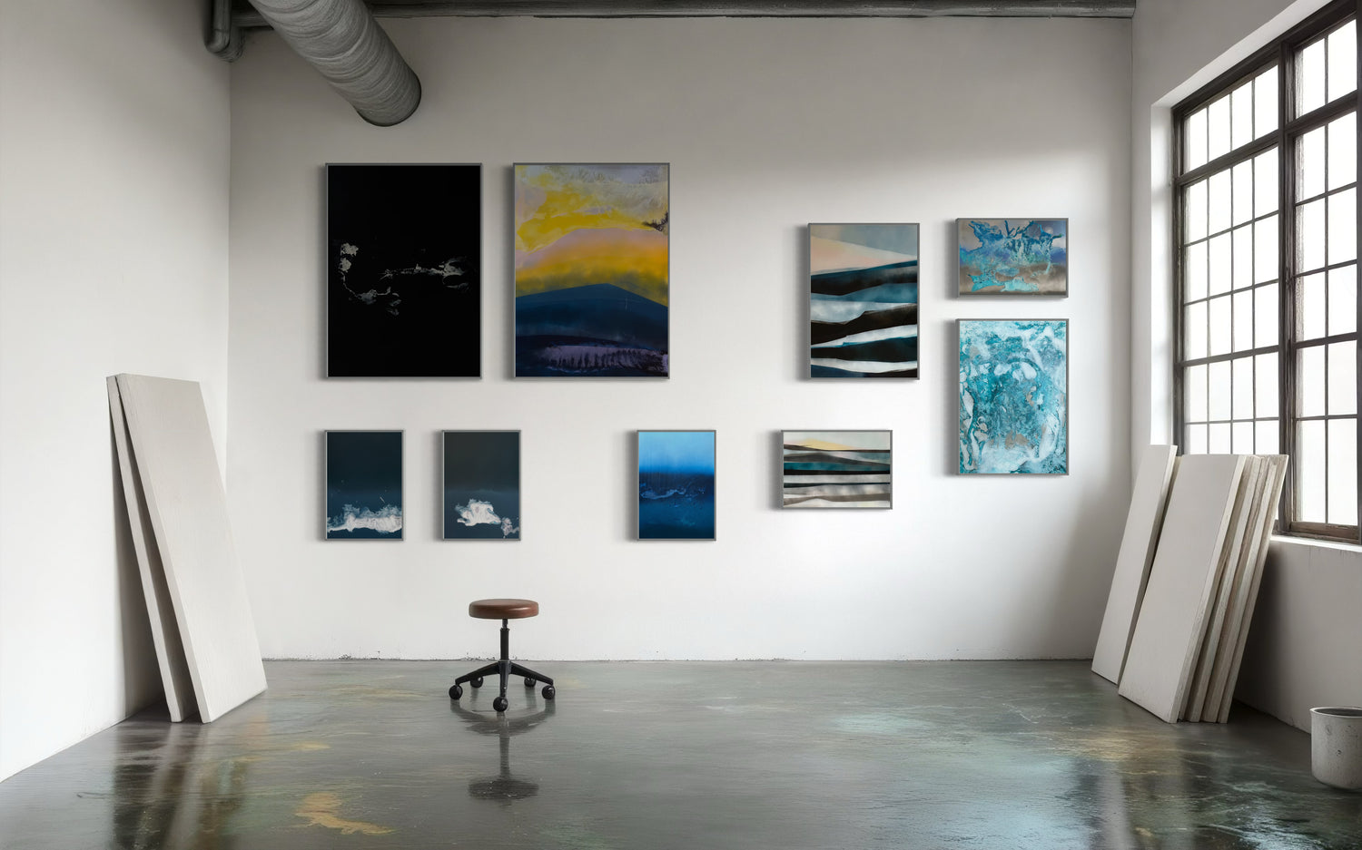 All works are sold framed. I have developed specific framing options for each of my six standard sizes.