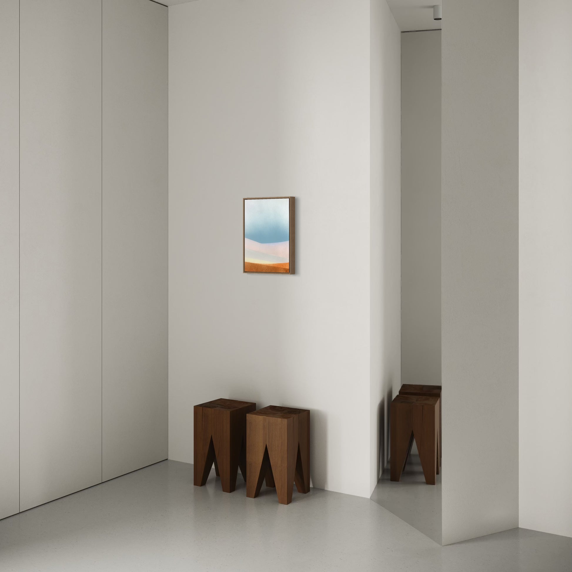 Unique piece, original painting by Anton Kaestner. Acrylic on plexiglass plate 2mm. Inch 17,3 12,6 * 1,38 / 44 * 32 * 3,5 cm. Nielsen 34 aluminium frame with natural wood N514 (Oak) finish (inch 0,23 * 1,38 / 0,6 * 3,5 cm) included. Certificate of authenticity. Delivery is covered by insurance.