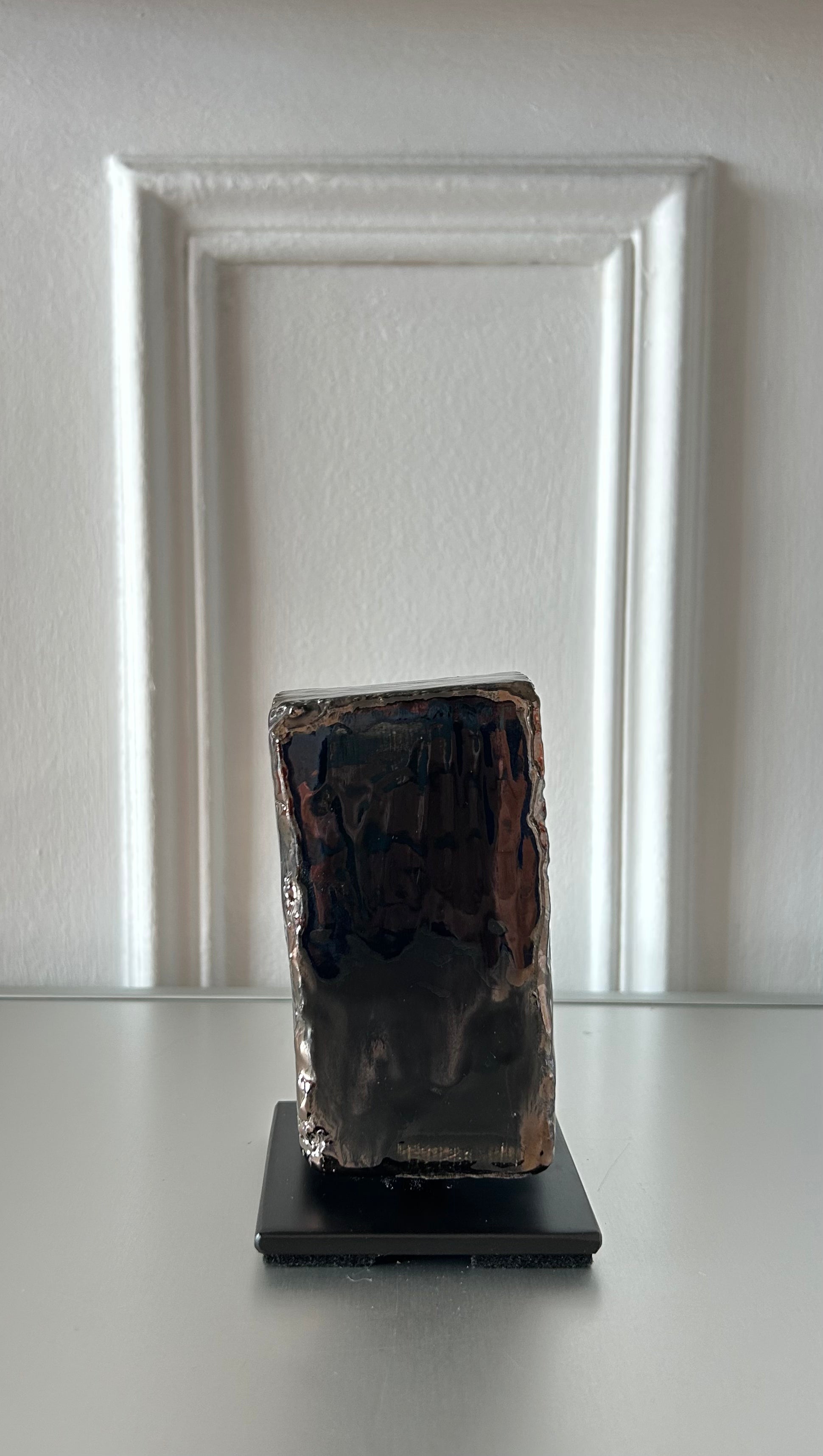 Enamel on brick +/- 4 * 5, 5 * 10,5 cm. Each sculpture is unique and comes with a certificate of authenticity and metallic base 7 * 7 * 0,6 cm (connection via extra-strong magnets).
