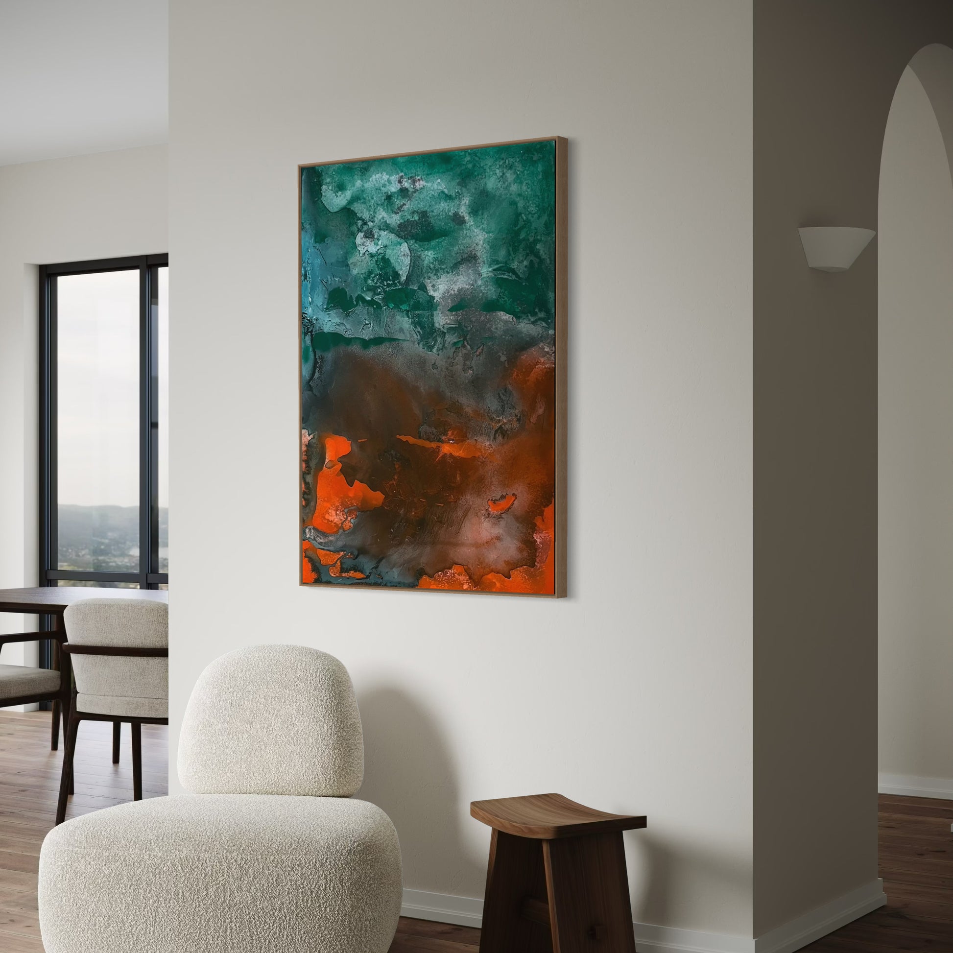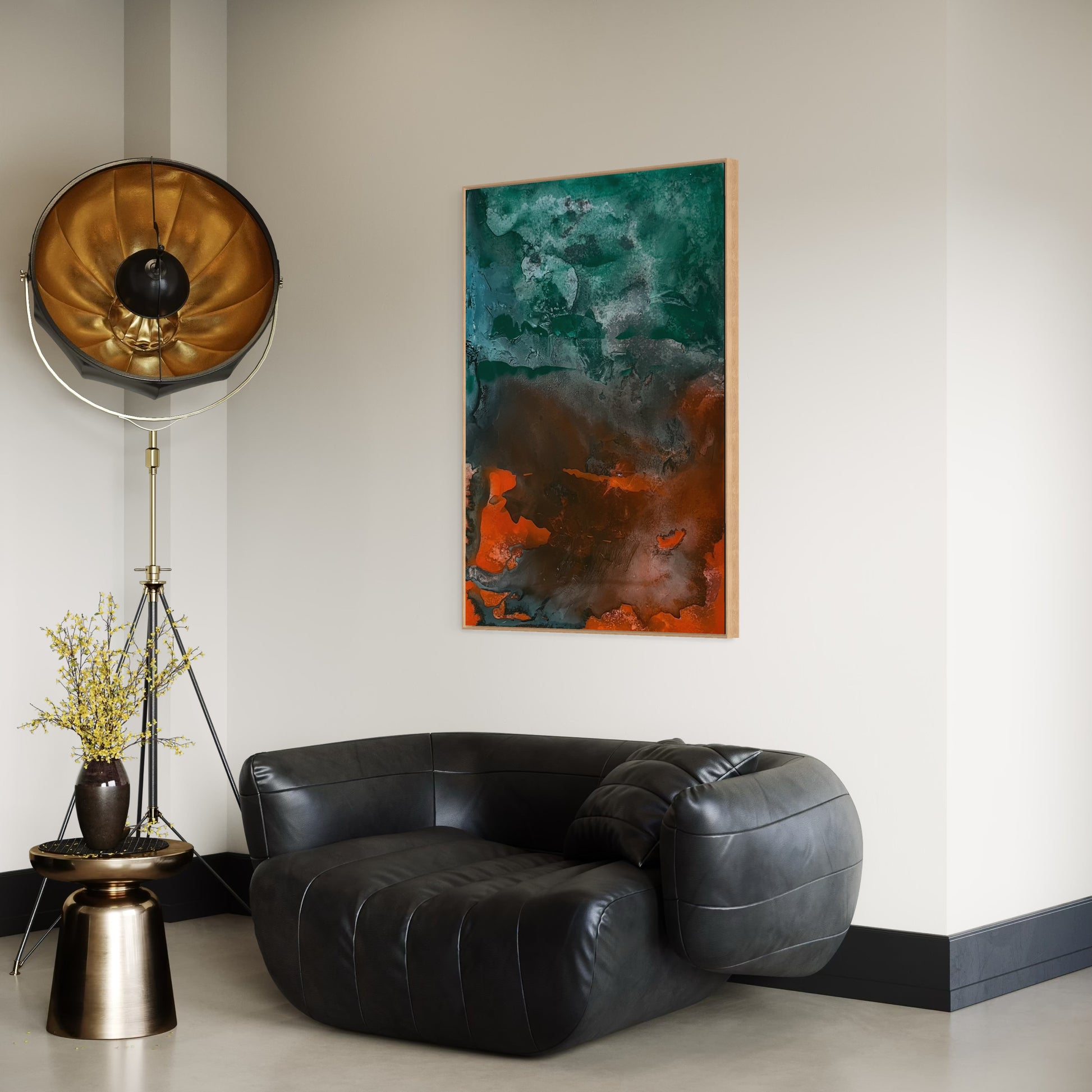 Unique piece, original painting by Anton Kaestner. Acrylic on plexiglass plate 3mm. Inch 47,6 * 33,9 * 1,18 / 121 * 86 * 3 cm. Metallic frame with natural wood finish (inch 0,23 * 1,38 / 0,6 * 3,5 cm) included. Certificate of authenticity. Delivery is covered by insurance.