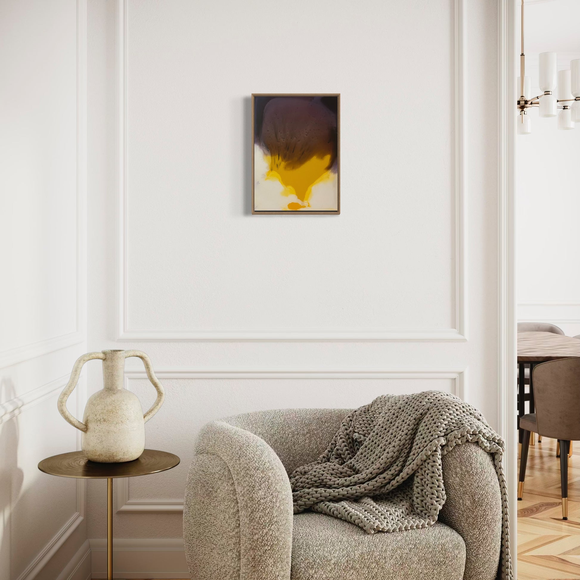 Unique piece, original painting by Anton Kaestner. Acrylic on plexiglass plate 2mm. Inch 17,3 12,6 * 1,38 / 44 * 32 * 3,5 cm. Nielsen 34 aluminium frame with natural wood N511 finish (inch 0,23 * 1,38 / 0,6 * 3,5 cm) included. Certificate of authenticity. Delivery is covered by insurance.