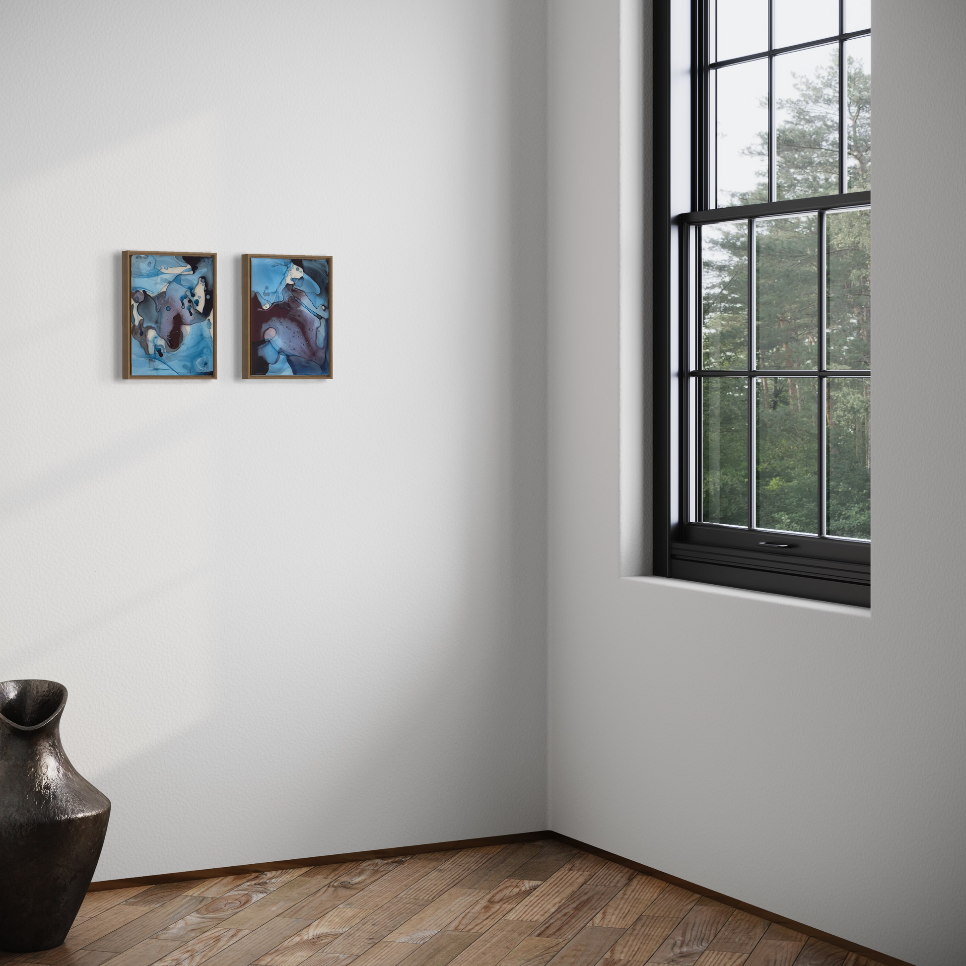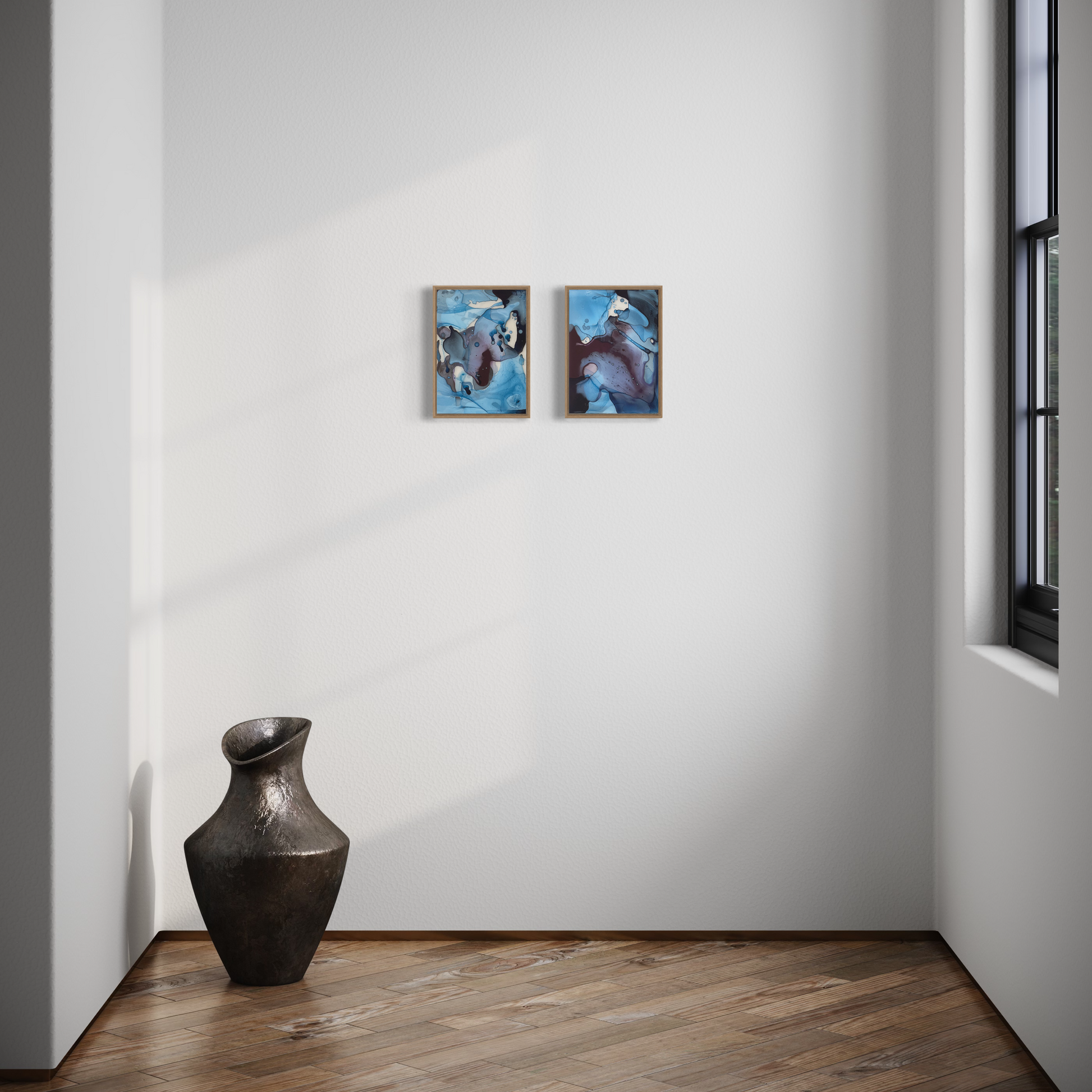 Unique piece, original painting by Anton Kaestner. Acrylic on 2 plexiglass plates, 2mm each with transparency. Inch 12,6 * 9,4 / 32 * 23 * 3 cm. Plates can be re-arranged, producing different art pieces. A similar painting (MEV8172224 Alt) is available to form a diptych. Natural wood frame (inch 0,23 * 1,18 / 0,6 * 3 cm) included. Certificate of authenticity. Delivery is covered by insurance.