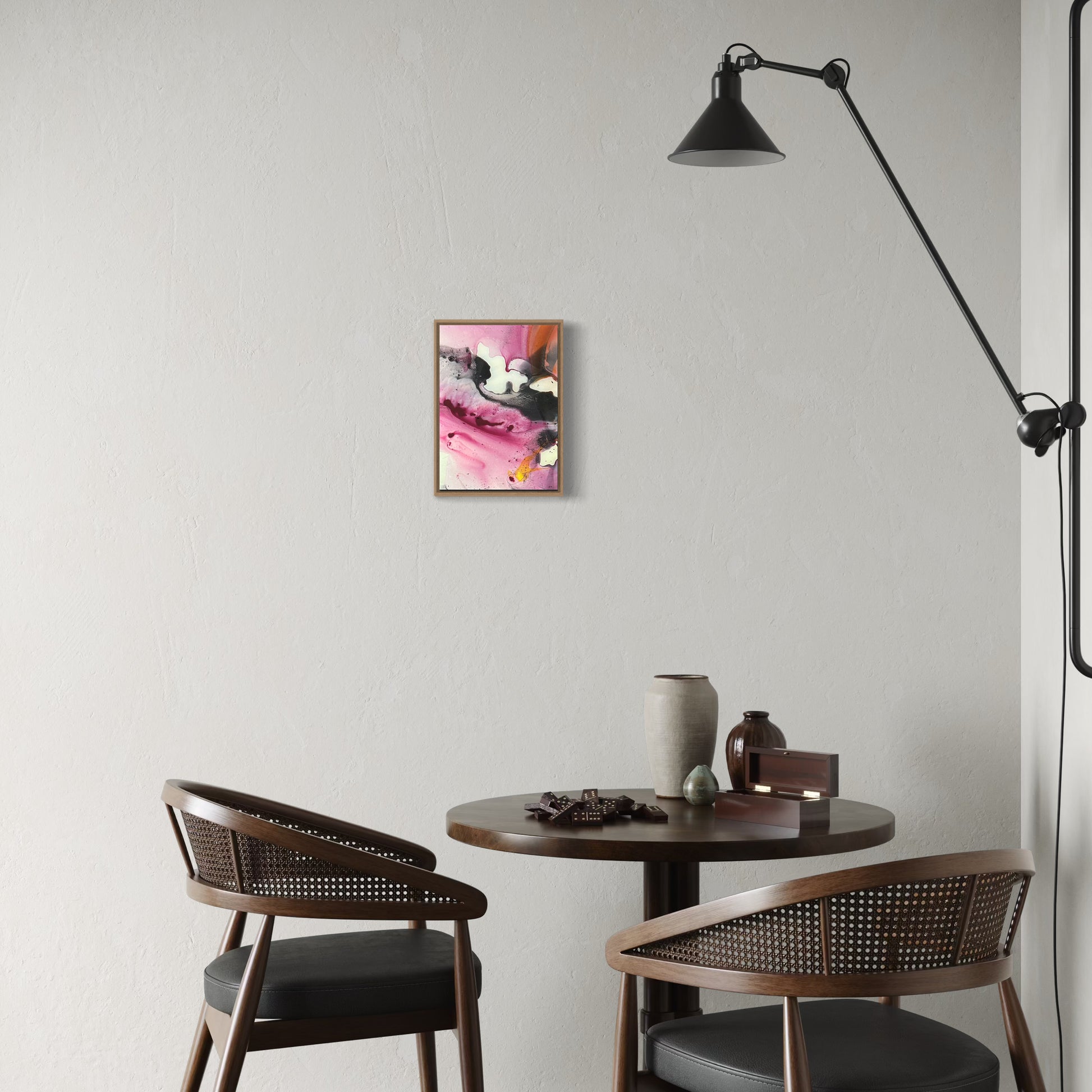 Unique piece, original painting by Anton Kaestner. Acrylic on plexiglass, 2mm. Inch 12,6 * 9,4 / 32 * 23 * 3,5 cm (framed). Nielsen aluminium frame, with oak finish 34N (inch 0,23 * 1,18 / 0,6 * 3,5 cm) included. Certificate of authenticity. Delivery is covered by insurance.