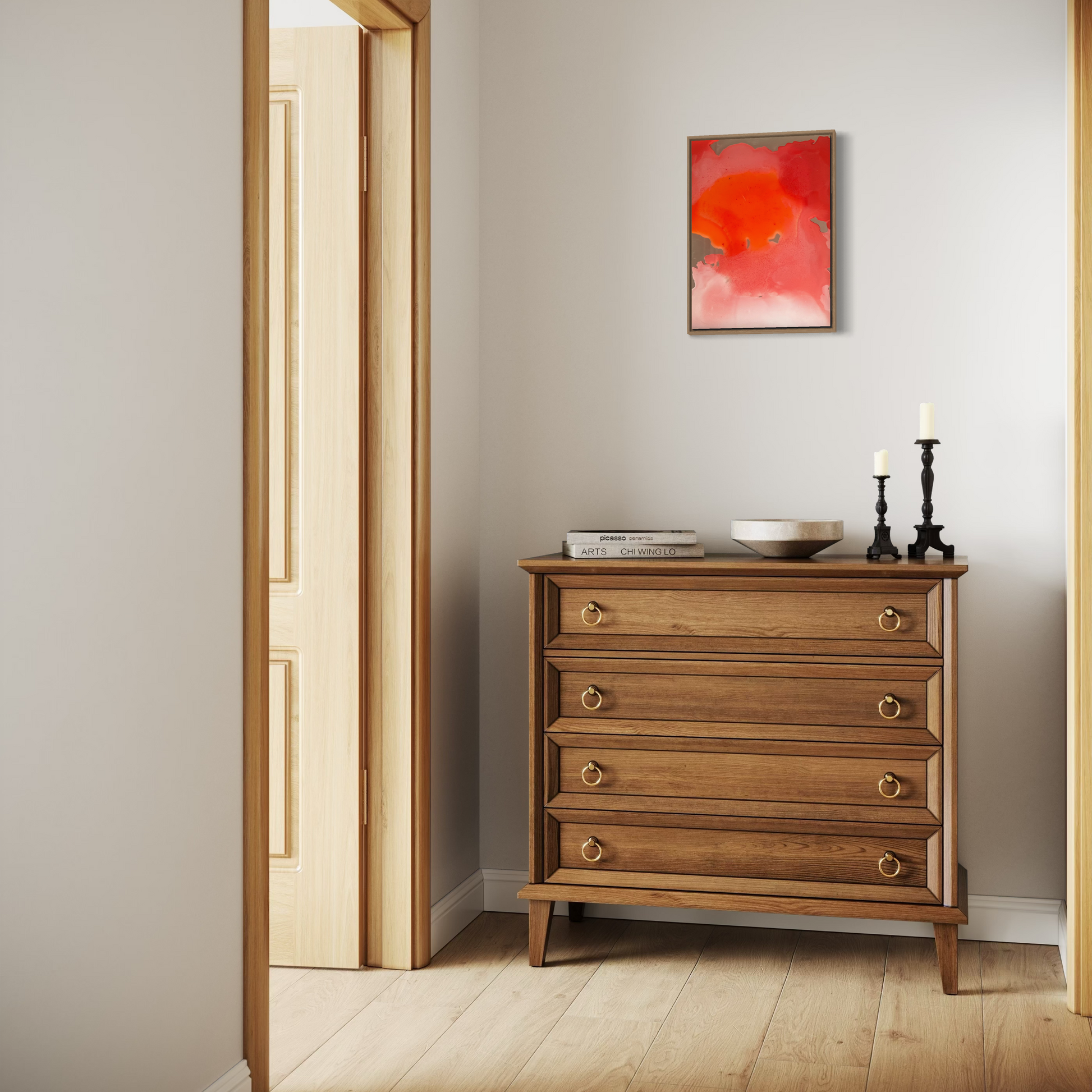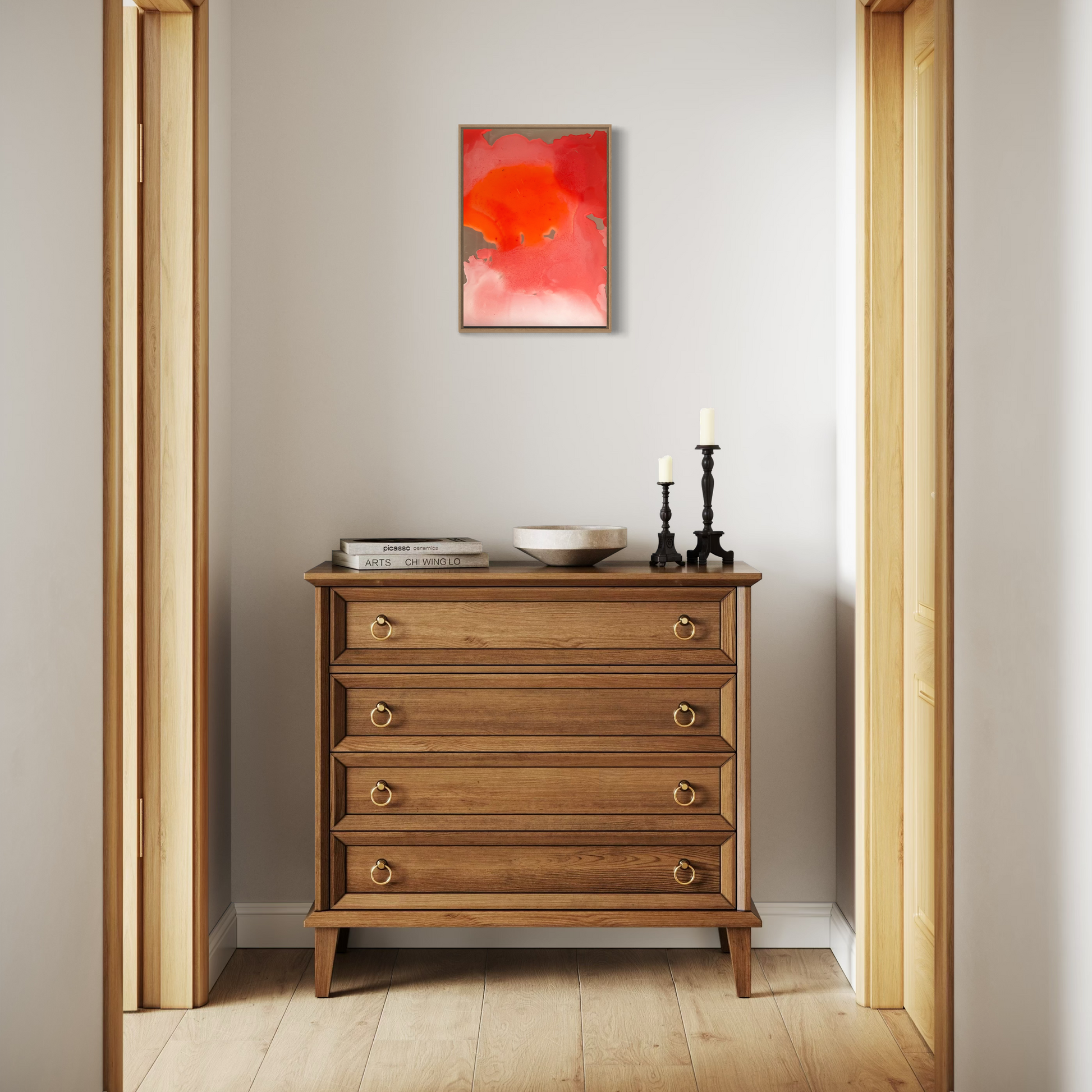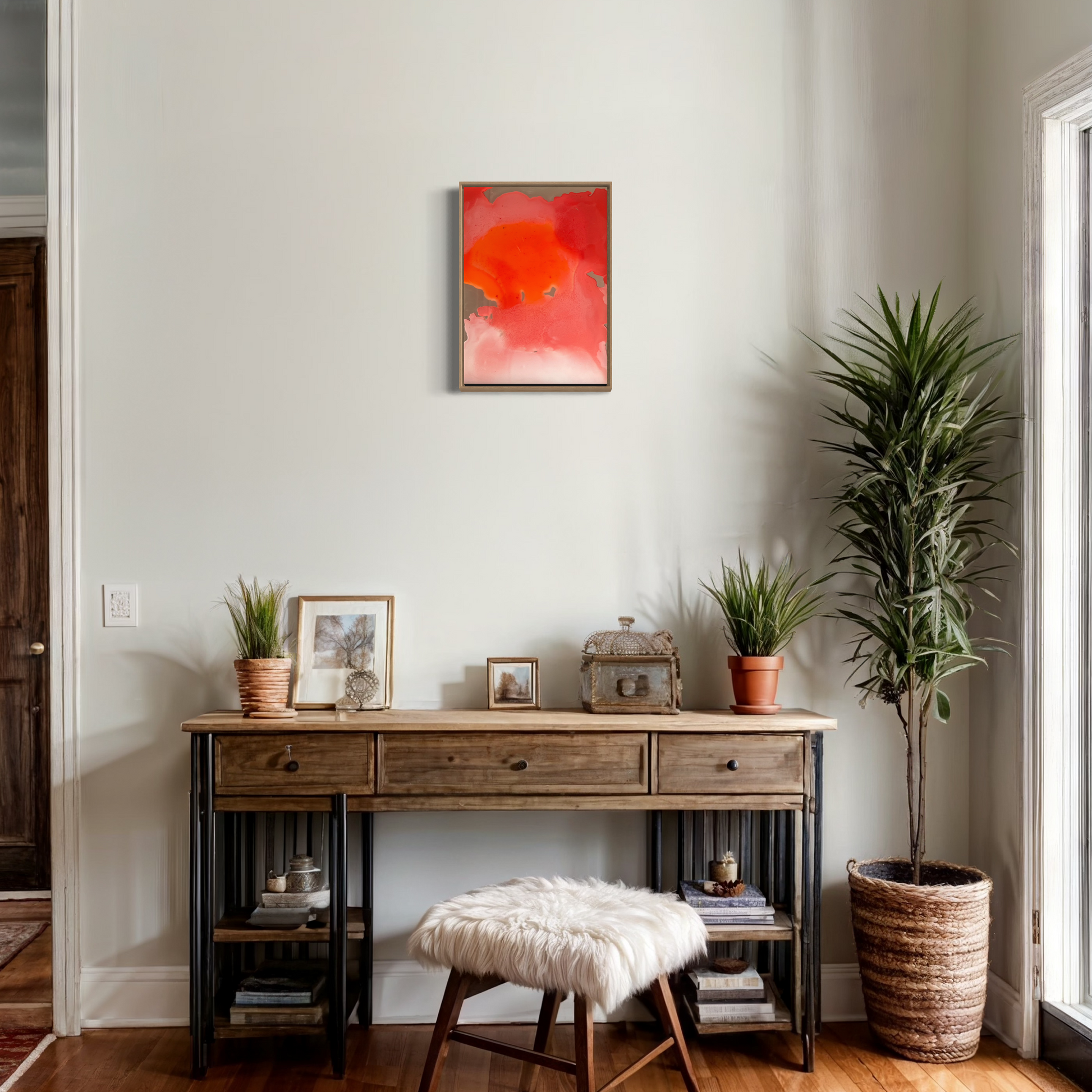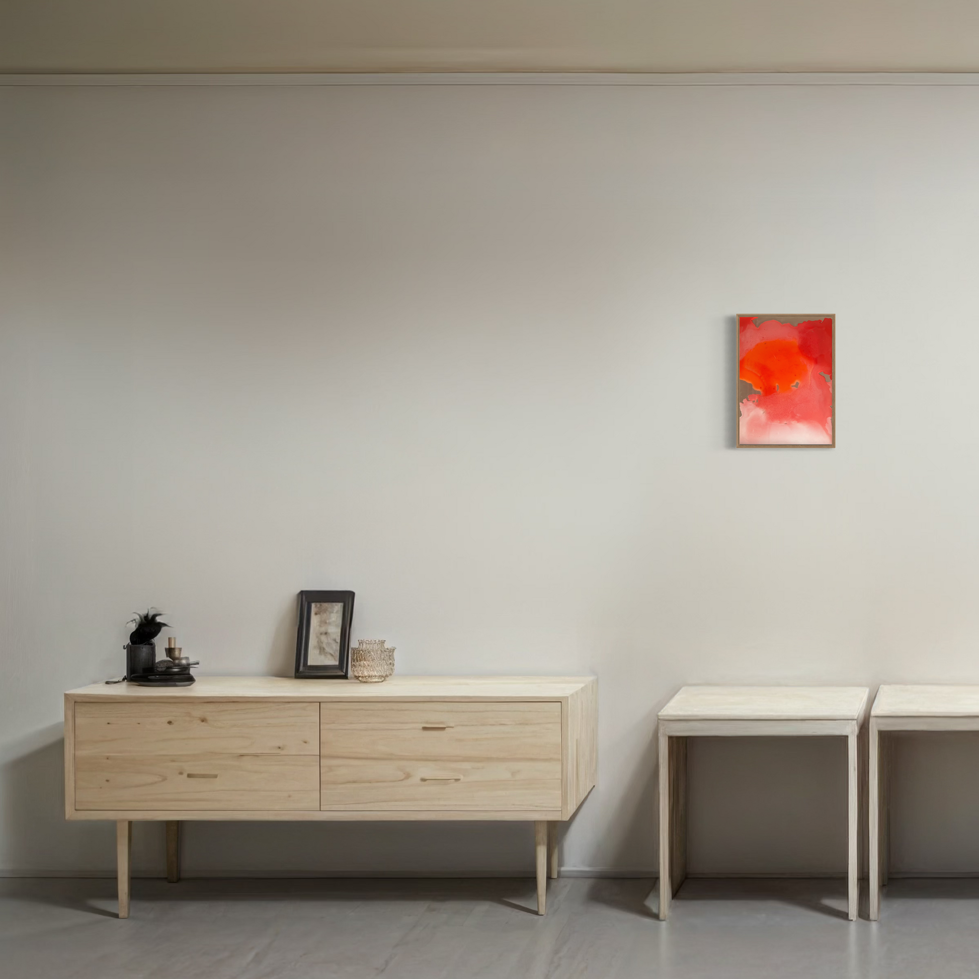 Unique piece, original painting by Anton Kaestner. Acrylic on 2 plexiglass plates, 2mm each with transparency. Inch 17,3 * 12,6 / 44 * 32 * 3 cm. Plates can be re-arranged, producing different art pieces. Natural wood frame (inch 0,23 * 1,18 / 0,6 * 3 cm) included. Certificate of authenticity. Delivery is covered by insurance.
