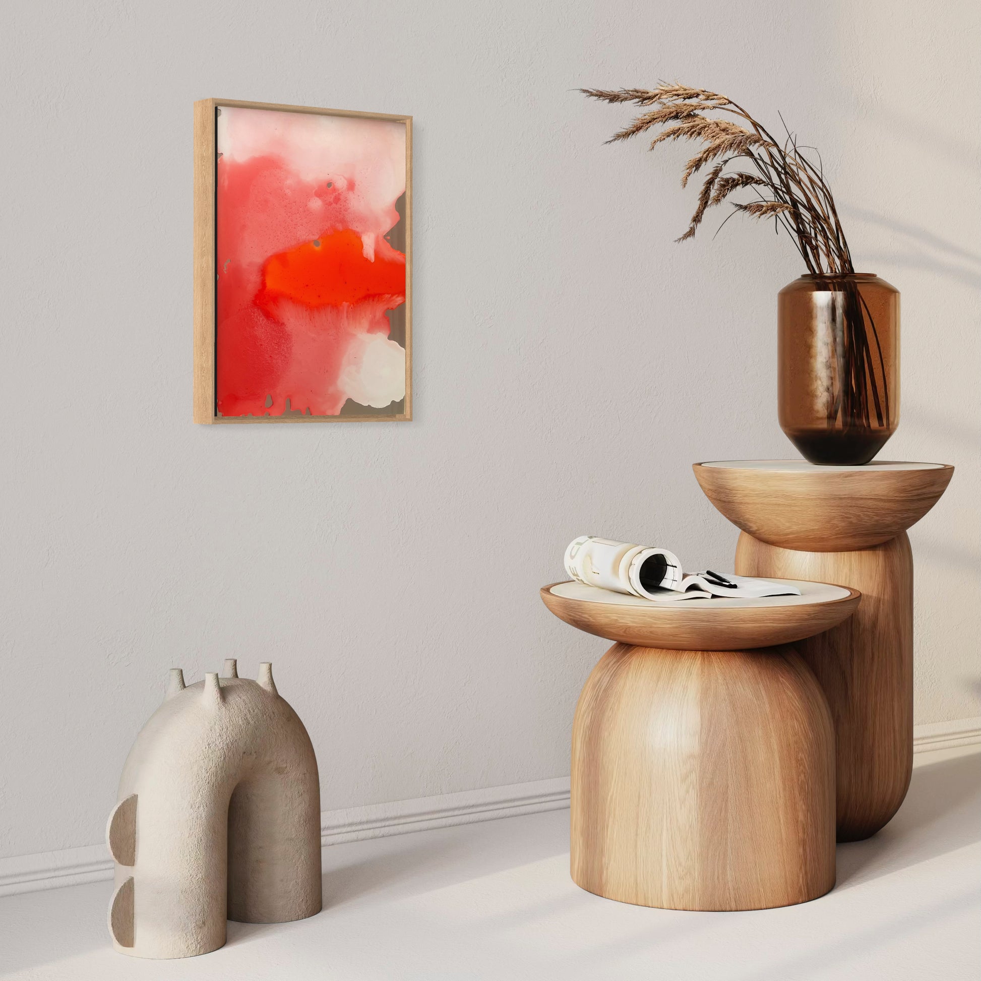 Unique piece, original painting by Anton Kaestner. Acrylic on a plexiglass plate and a mirror, 2mm each with transparency. Inch 17,3 * 12,6 / 44 * 32 * 3 cm. Metallic frame with natural wood finish (inch 0,23 * 1,38 / 0,6 * 3,5 cm) included. Certificate of authenticity. Delivery is covered by insurance.