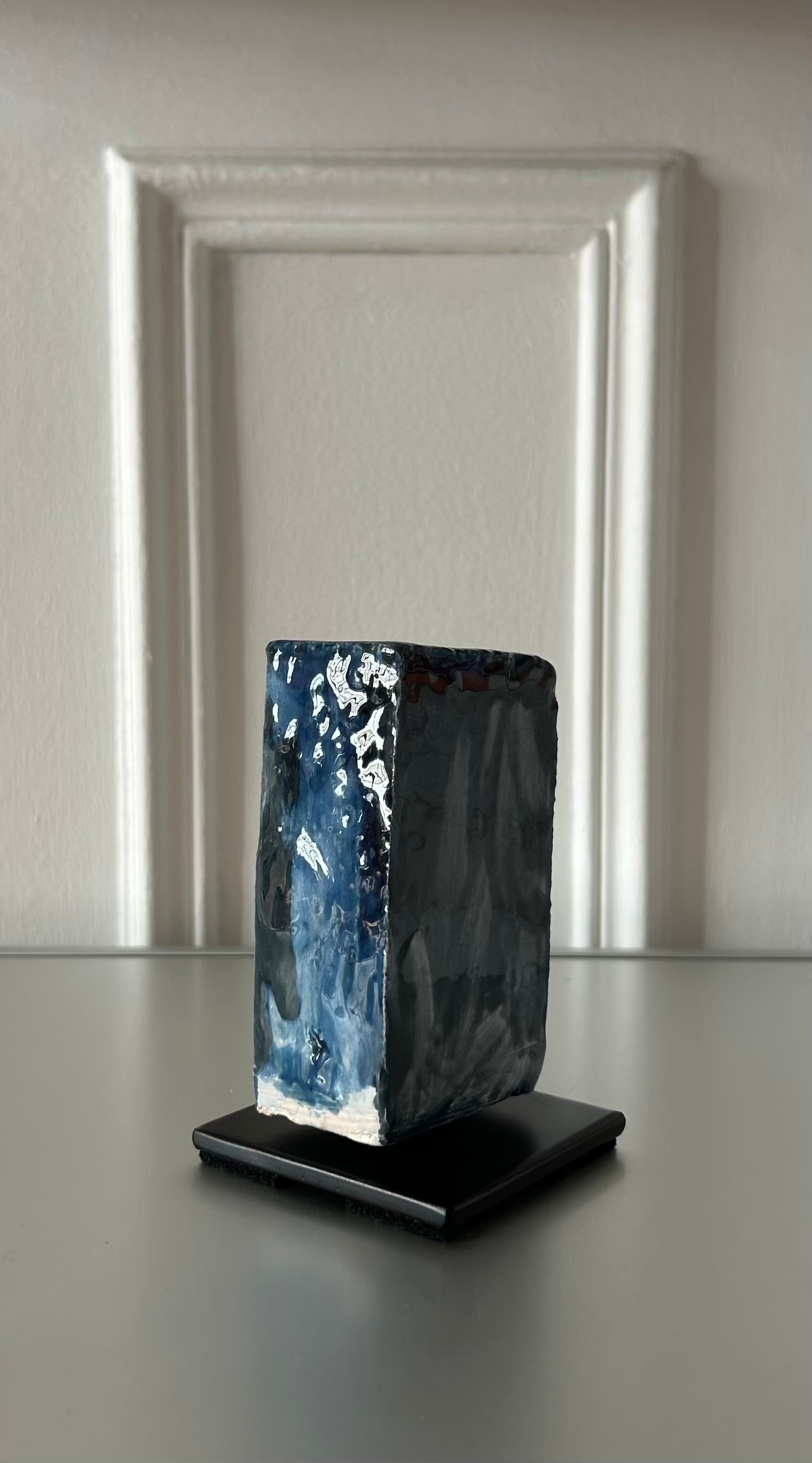 Enamel on brick +/- 4 * 5, 5 * 10,5 cm. Each sculpture is unique and comes with a certificate of authenticity and metallic base 7 * 7 * 0,6 cm (connection via extra-strong magnets).