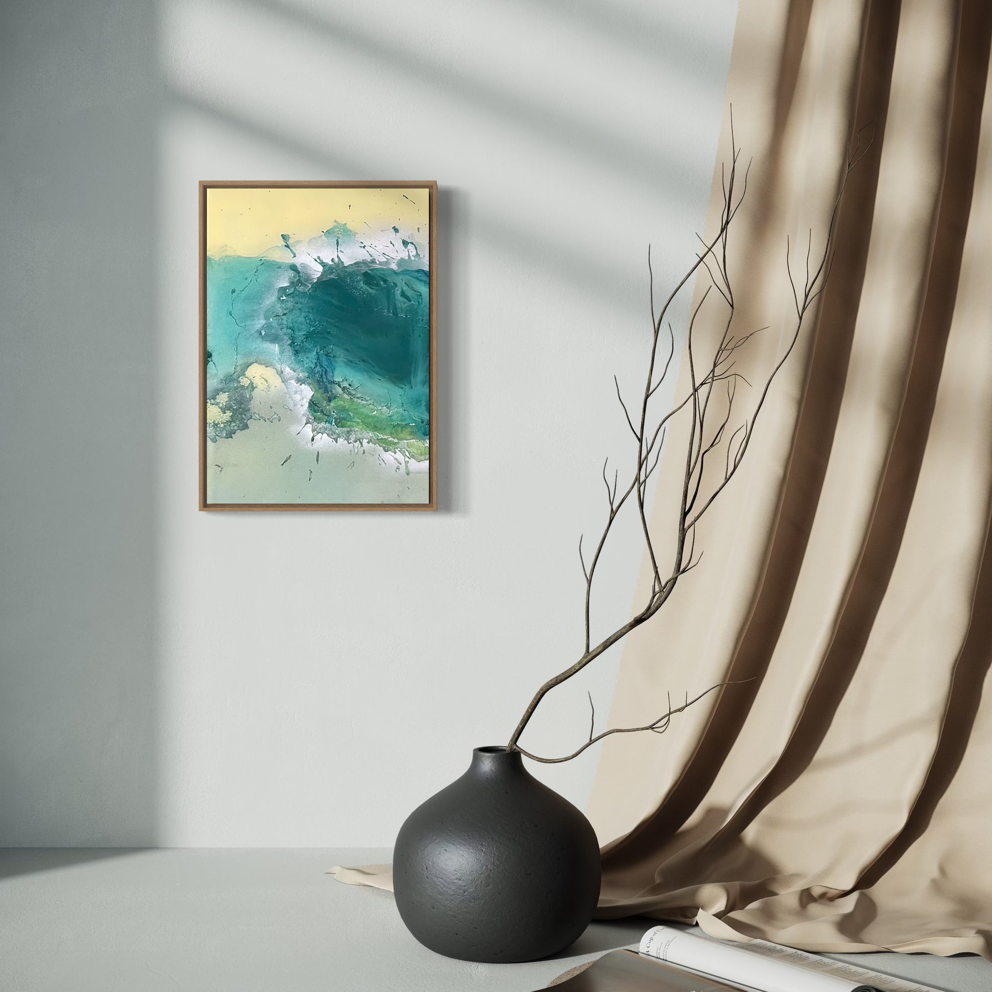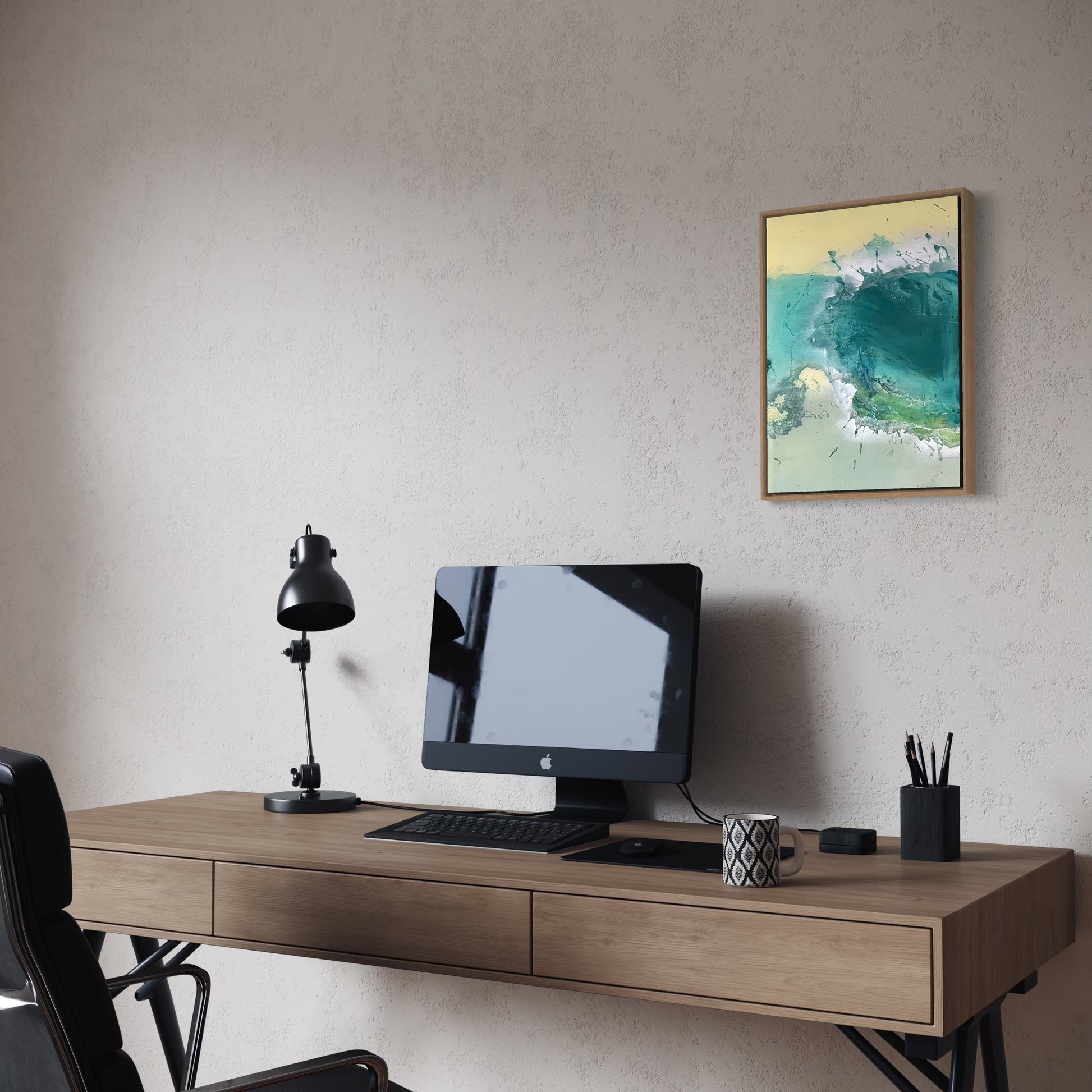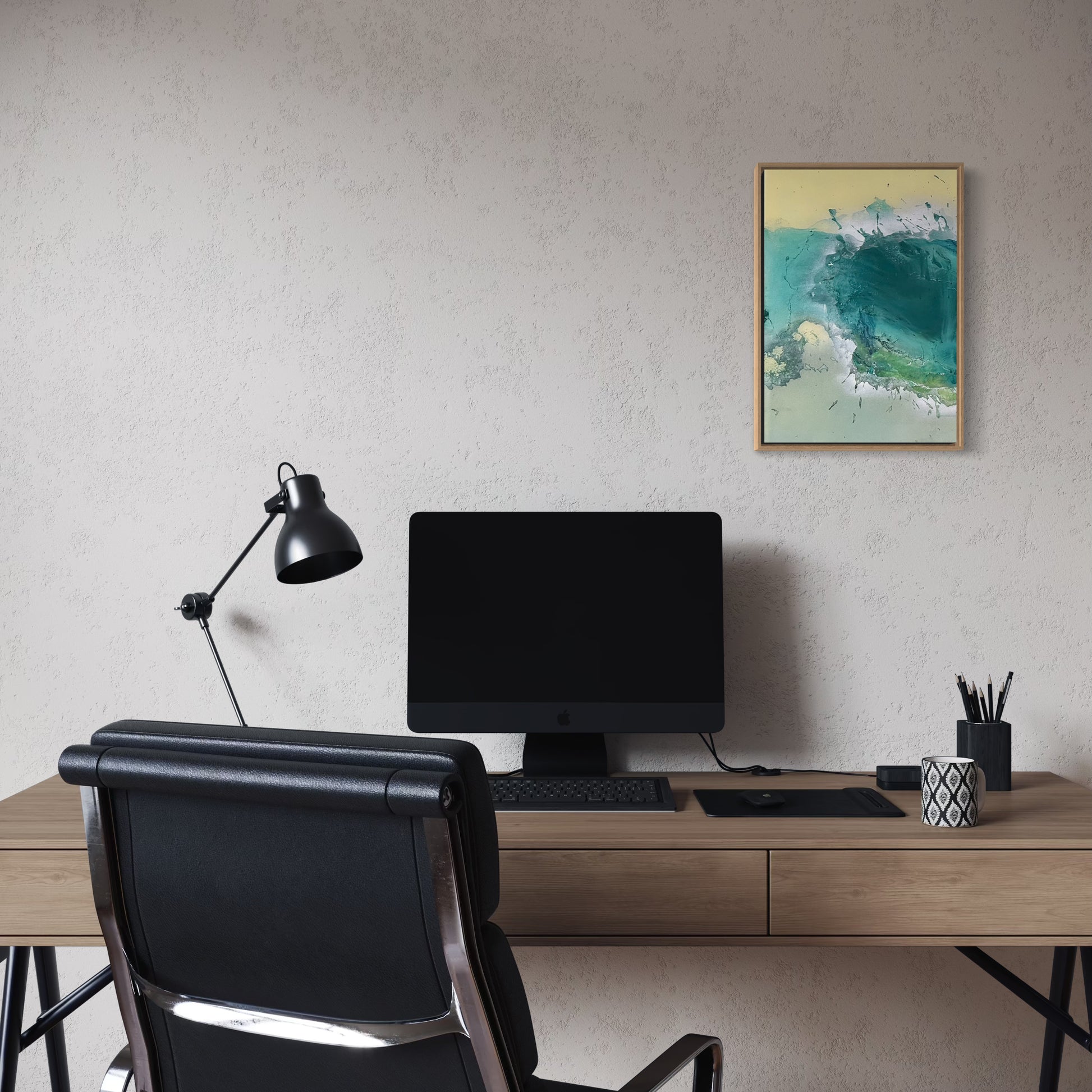 Unique piece, original painting by Anton Kaestner. Acrylic on plexiglass plate 3mm. Inch 17,3 * 12,2 * 1,38 / 44 * 31 * 3,5 cm. Nielsen 34 aluminium frame with oak N514 finish (inch 0,23 * 1,38 / 0,6 * 3,5 cm) included. Certificate of authenticity. Delivery is covered by insurance.