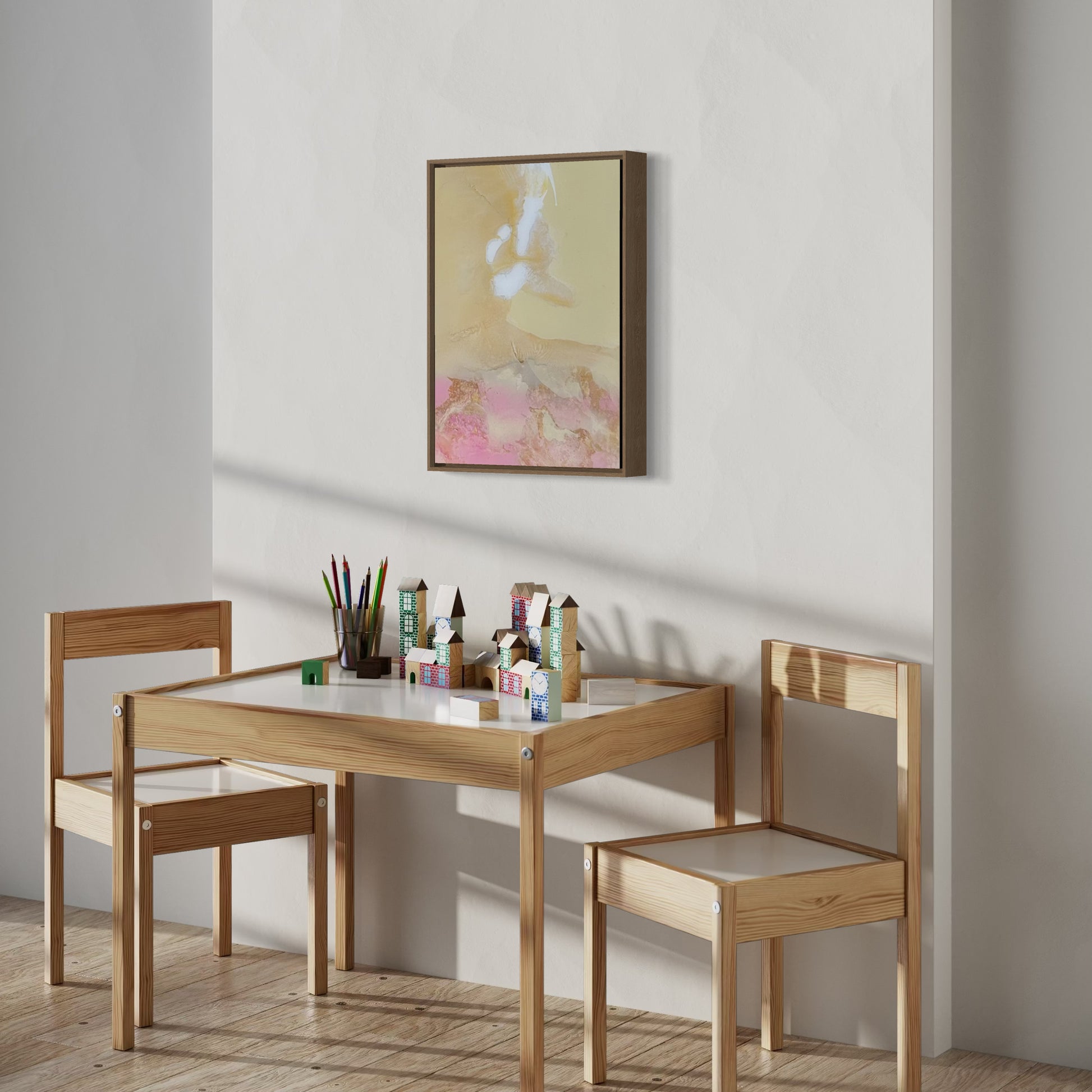 Unique piece, original painting by Anton Kaestner. Acrylic on plexiglass plate 3mm. Inch 15,7 * 11,4 * 1,38 / 40 * 29 * 3,5 cm. Nielsen 34 aluminium frame with oak N514 finish (inch 0,23 * 1,38 / 0,6 * 3,5 cm) included. Certificate of authenticity. Delivery is covered by insurance.