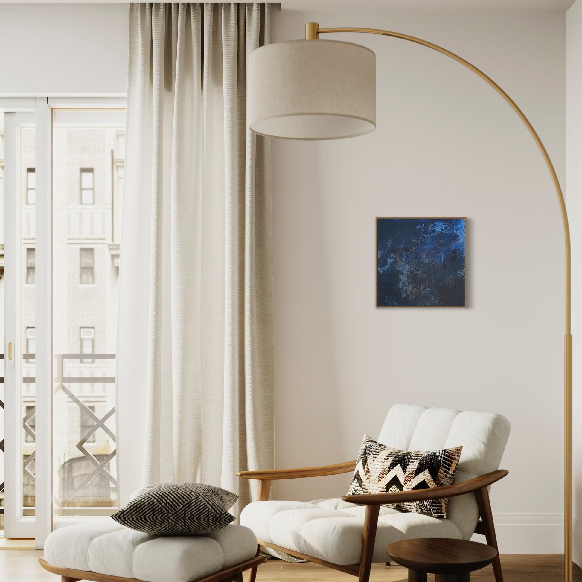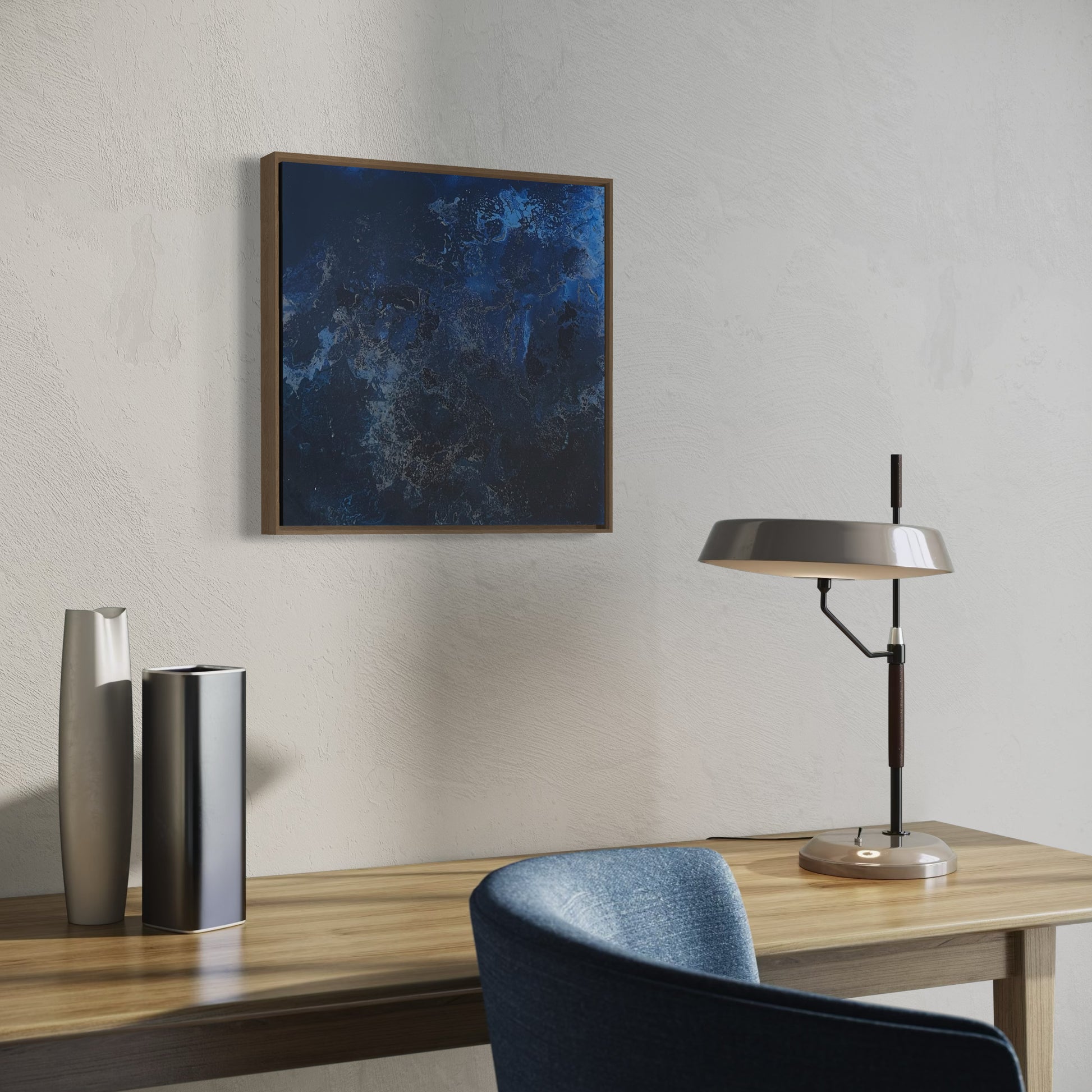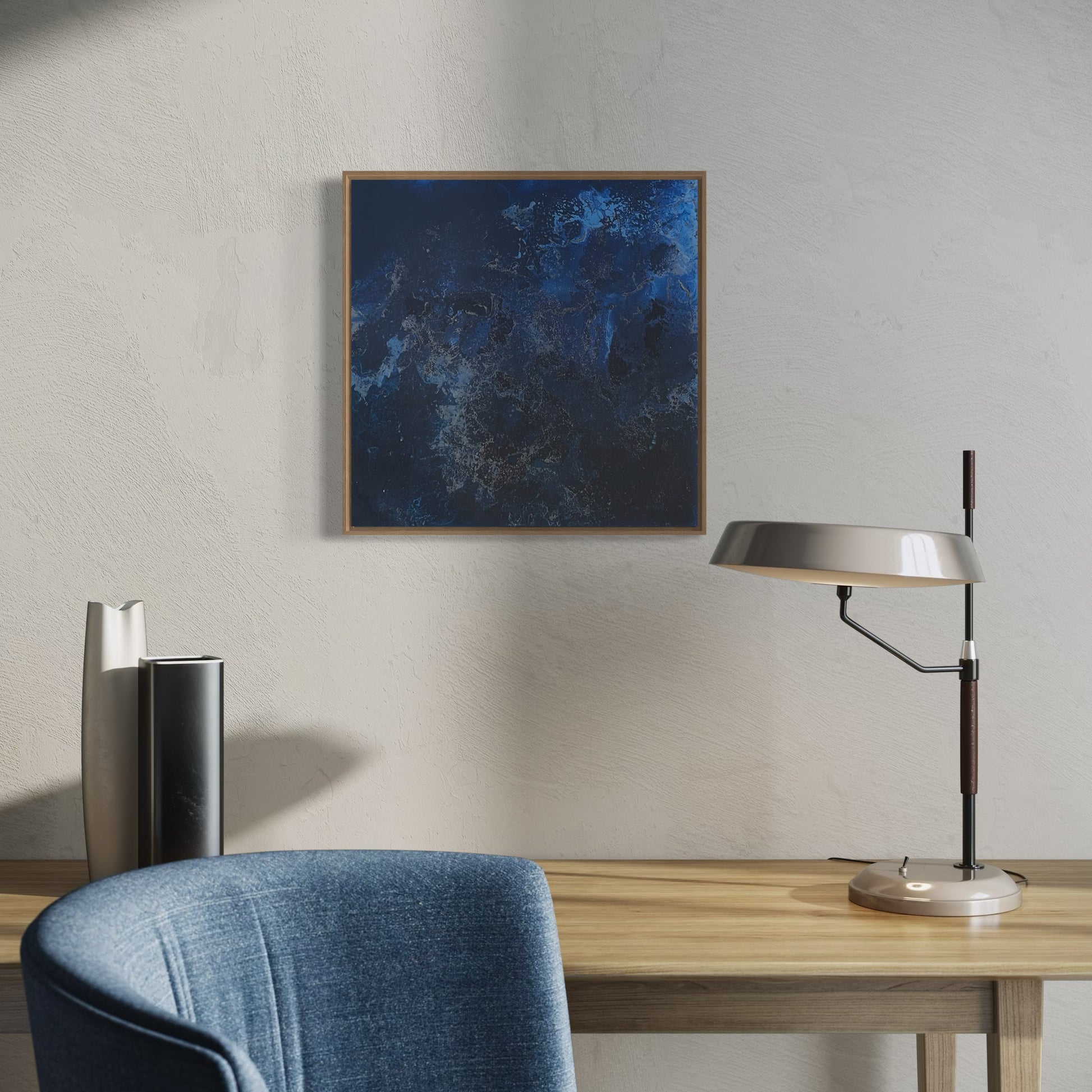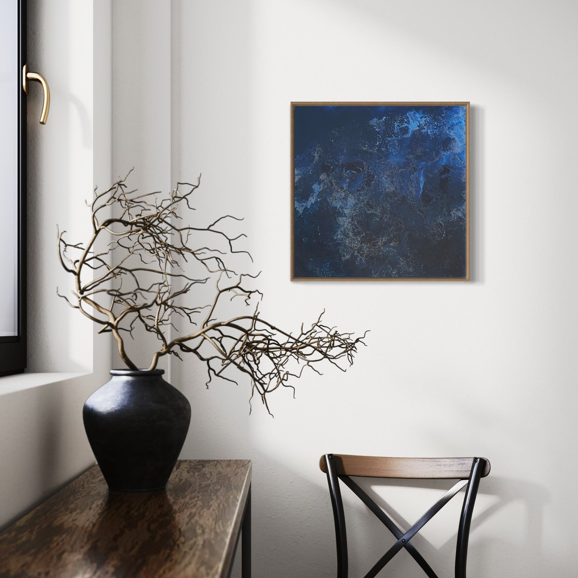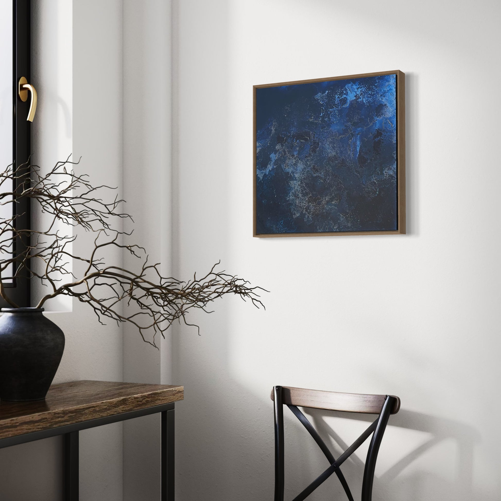 Unique piece, original painting by Anton Kaestner. Acrylic on plexiglass plate 3mm. Inch 17,3 * 17,3 * 1,38 / 44 * 44 * 3,5 cm. Nielsen 34 aluminium frame with Oak N514 finish (inch 0,23 * 1,38 / 0,6 * 3,5 cm) included. Certificate of authenticity. Delivery is covered by insurance.
