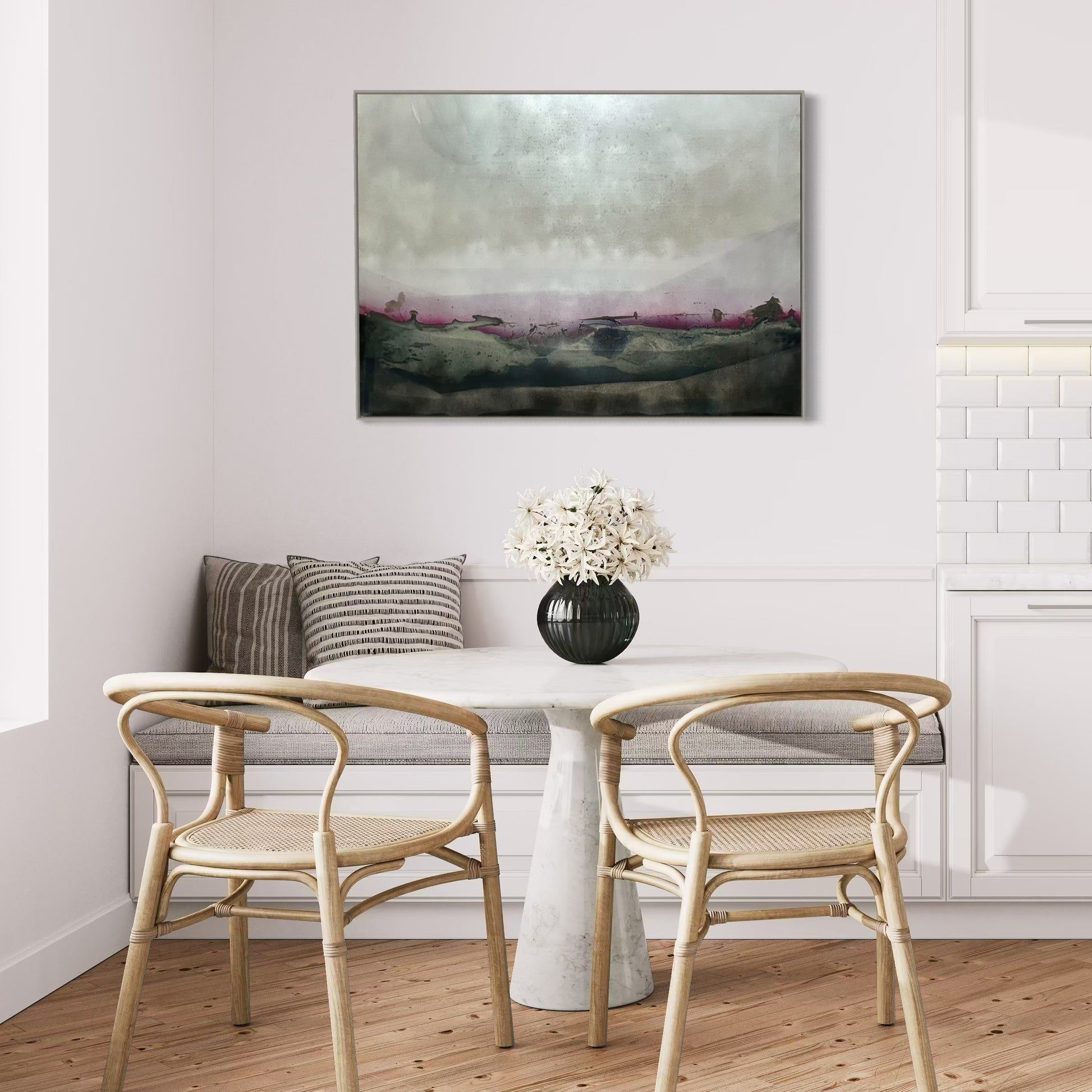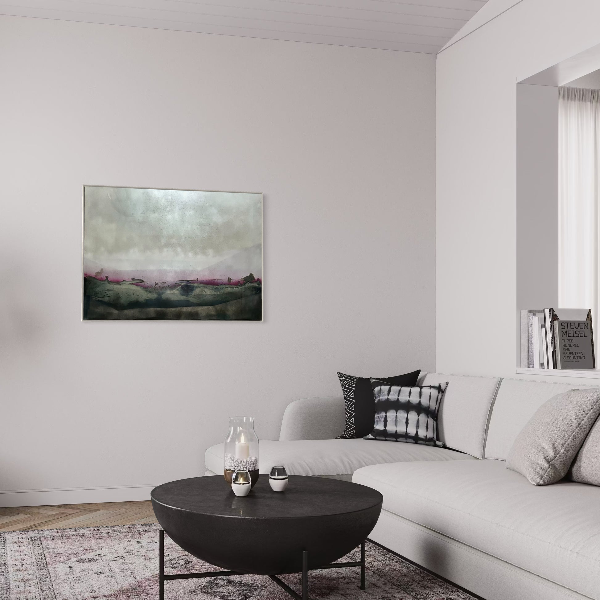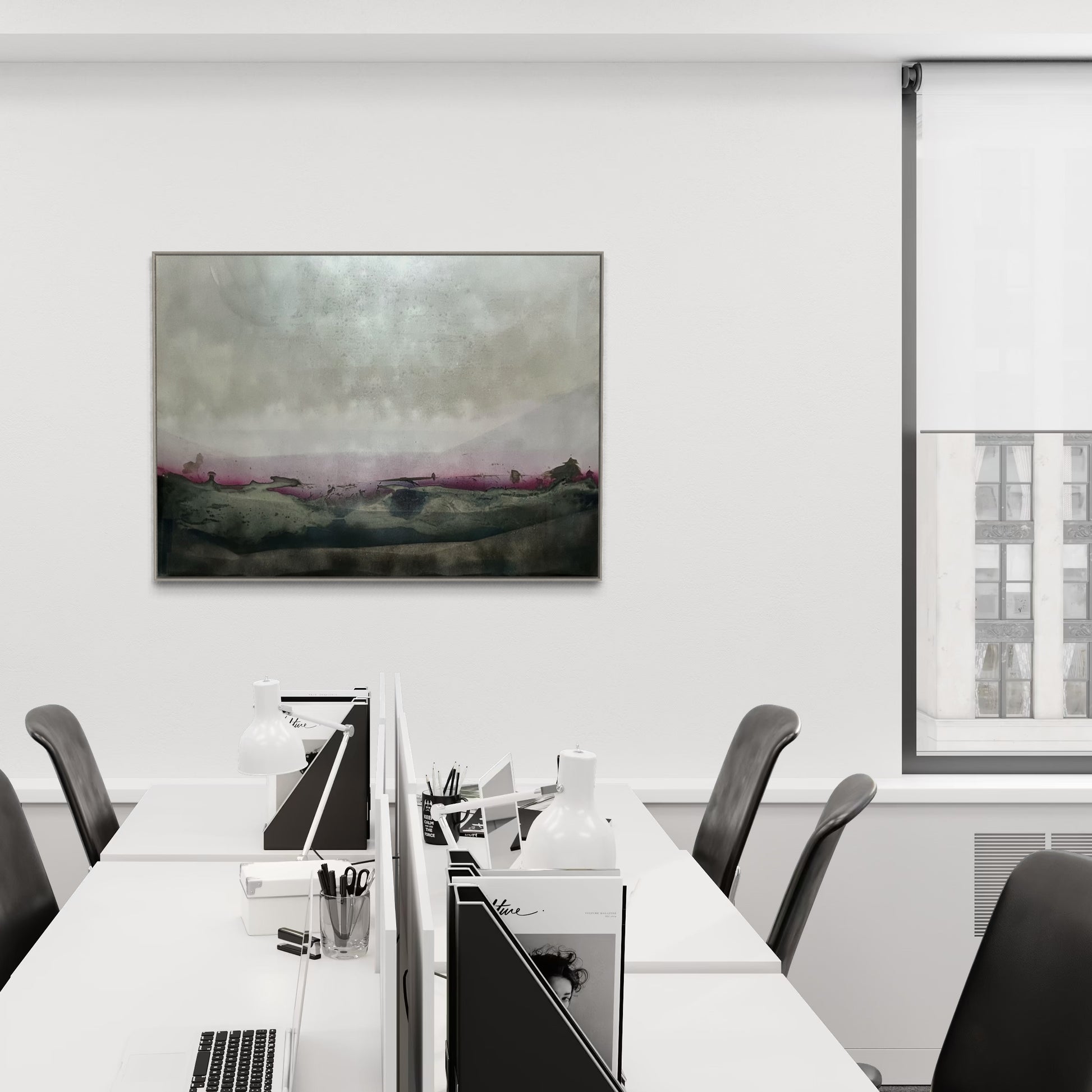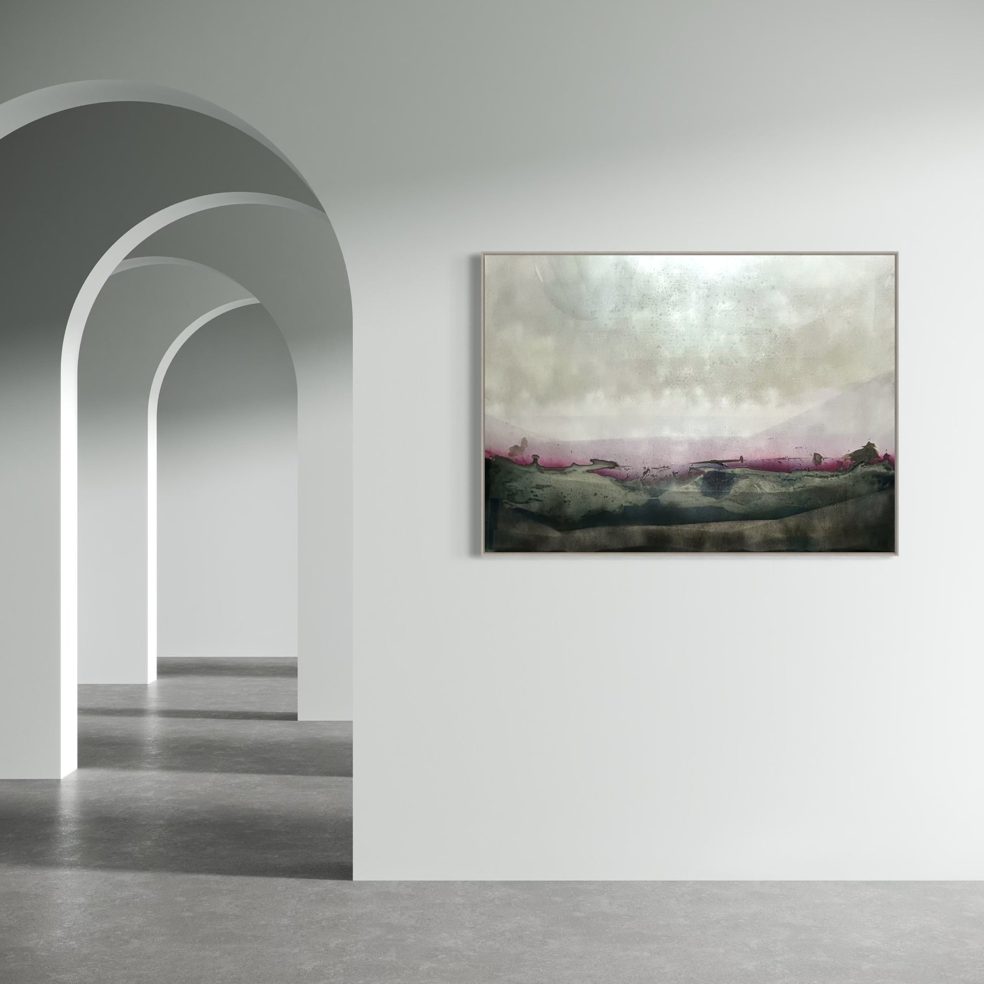 Unique piece, original painting by Anton Kaestner. Acrylic on plexiglass plate 3mm. Inch 34,3 * 47,2 * 1,18 / 87 * 120 * 3 cm. Nielsen 34 aluminium frame with mat silver finish (inch 0,23 * 1,38 / 0,6 * 3,5 cm) included. Certificate of authenticity. Delivery is covered by insurance.