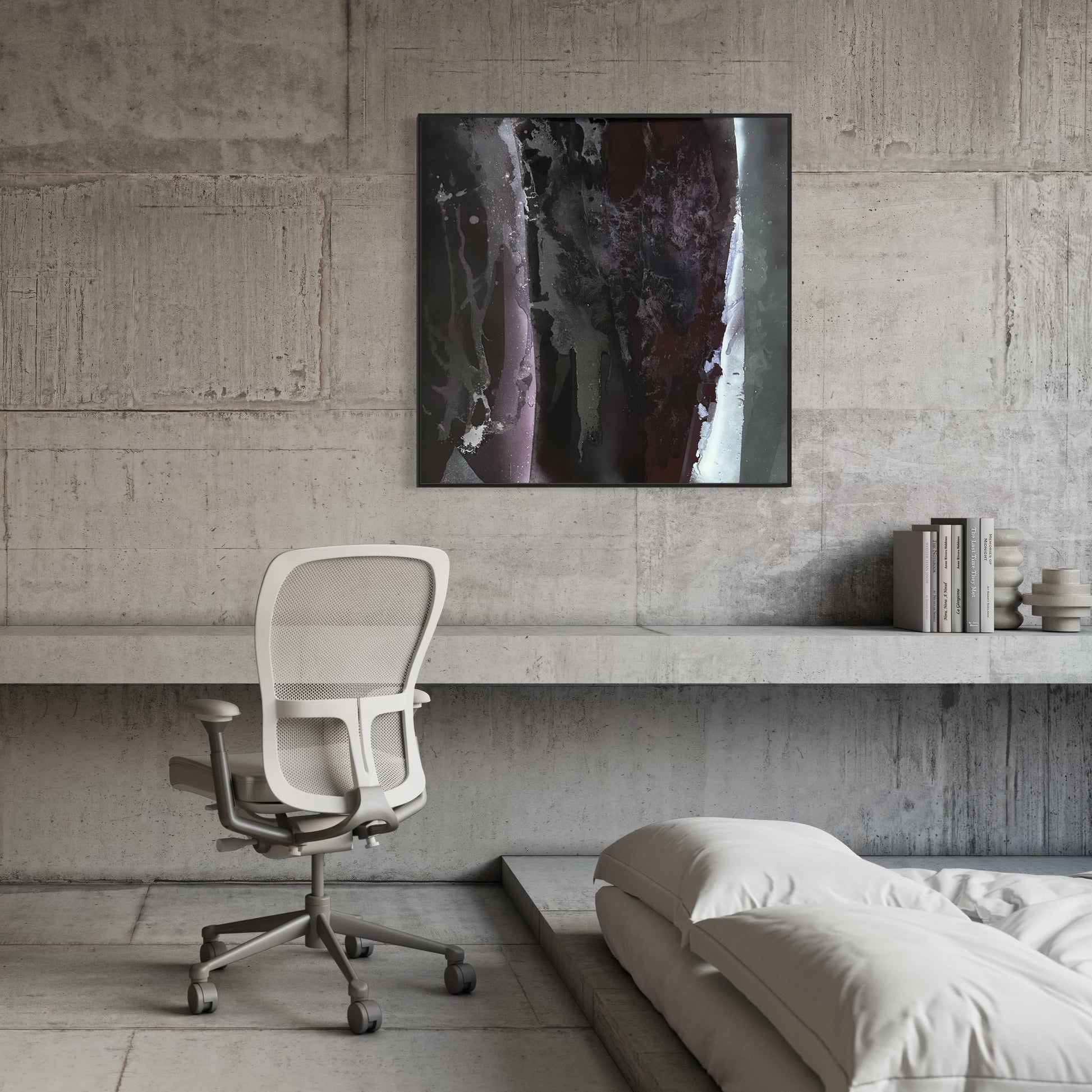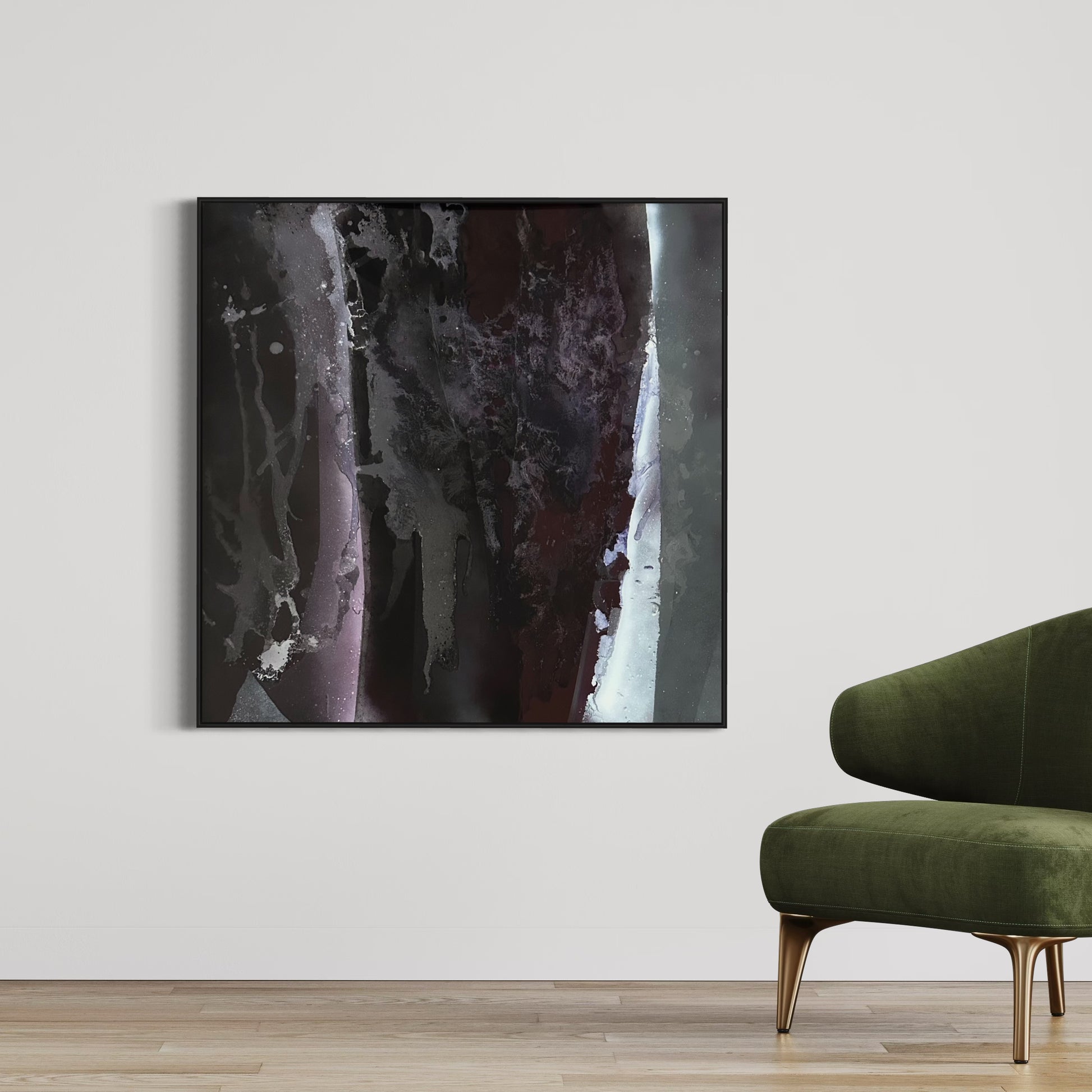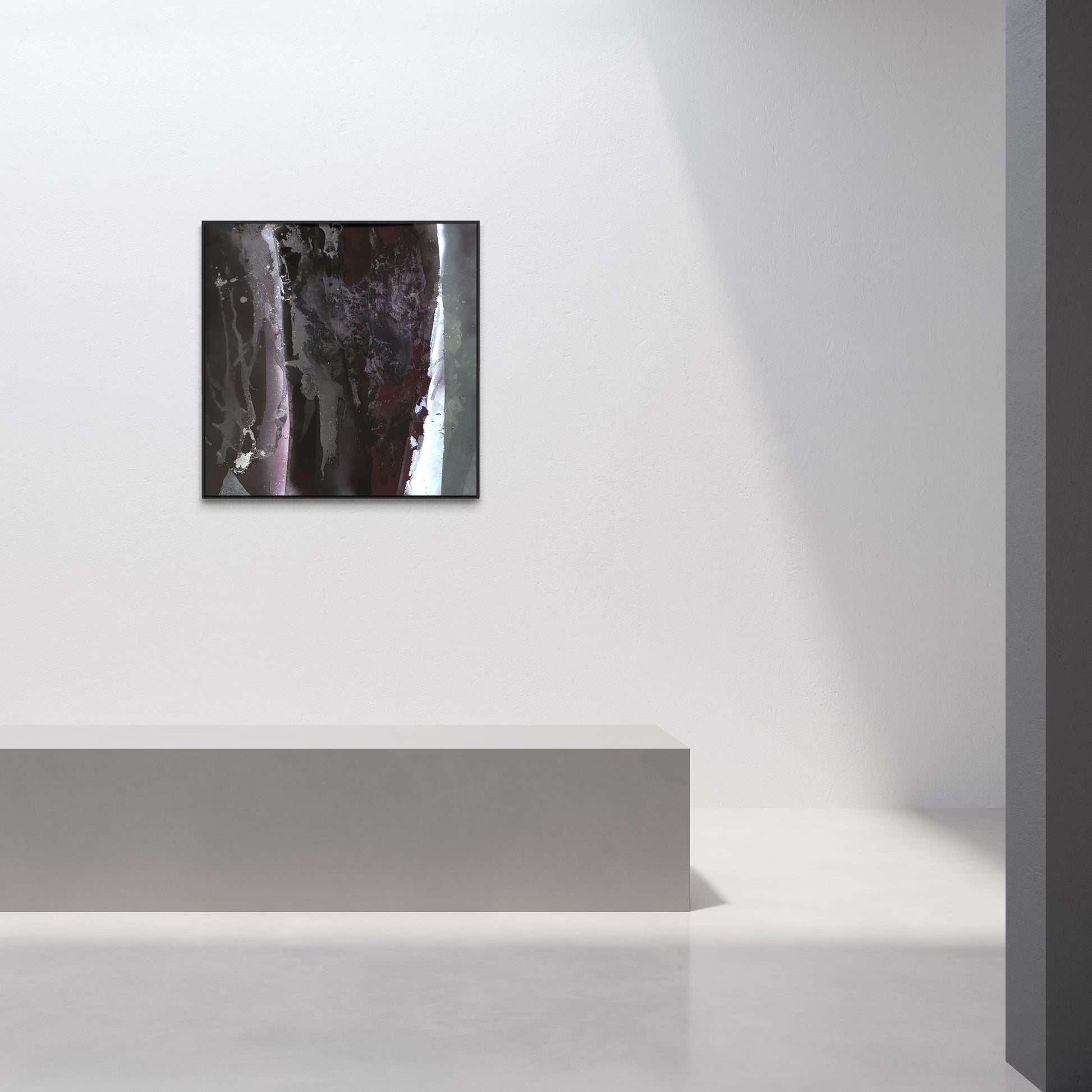 Unique piece, original painting by Anton Kaestner. Acrylic on plexiglass plate 3mm. Inch 39,4 * 39,4 * 1,18 / 100 * 100 * 3 cm. Nielsen 34 aluminium frame with black mat finish (inch 0,23 * 1,38 / 0,6 * 3,5 cm) included. Certificate of authenticity. Delivery is covered by insurance.