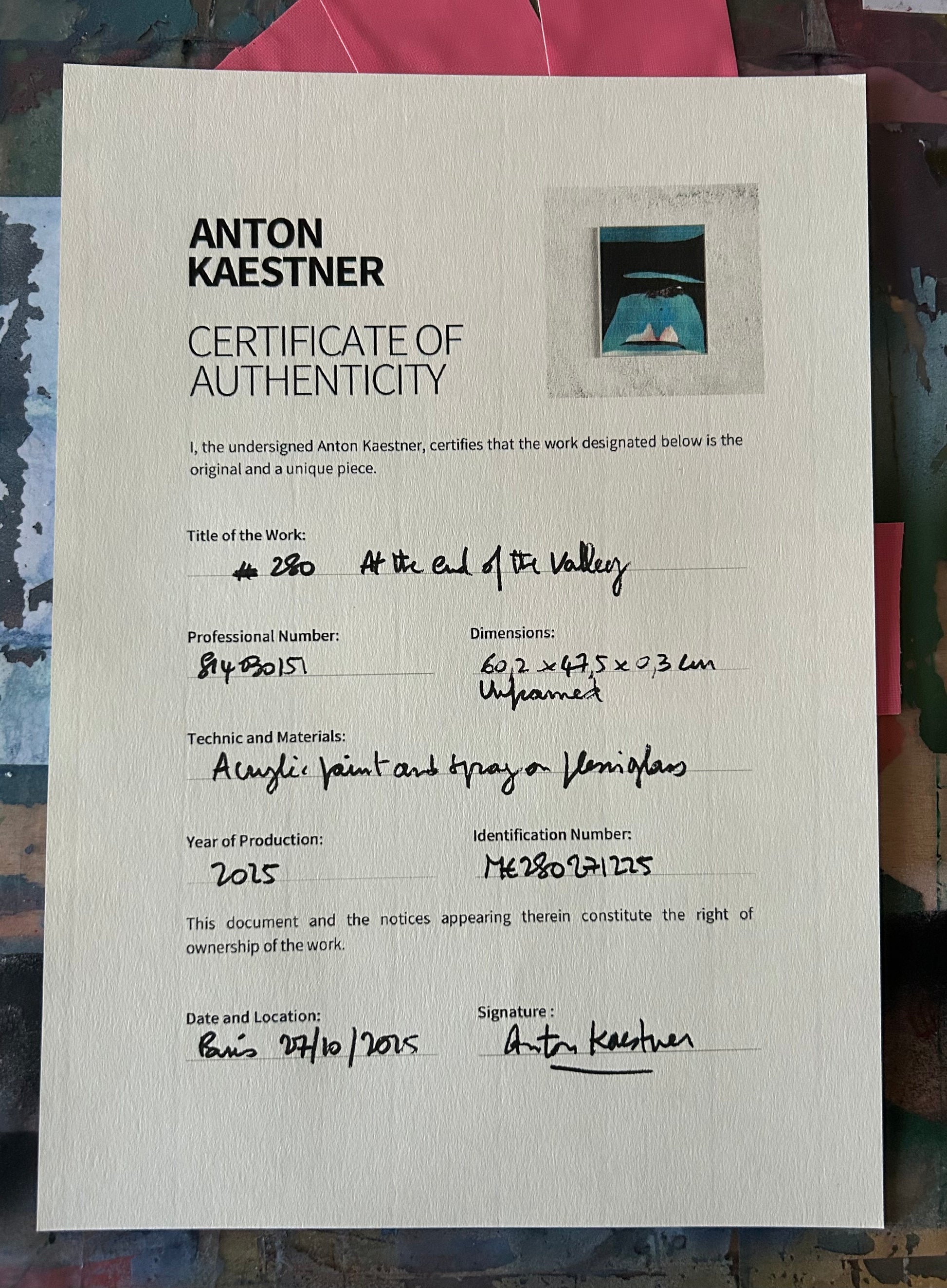 Unique piece, original painting by Anton Kaestner. Acrylic on plexiglass plate 2mm. Inch 23,7 * 18,7 / 60,2 * 47,5 * 3 cm. Nielsen aluminium frame with Oak finish (inch 0,23 * 1,18 / 0,6 * 3 cm) included. Certificate of authenticity. Delivery is covered by insurance.