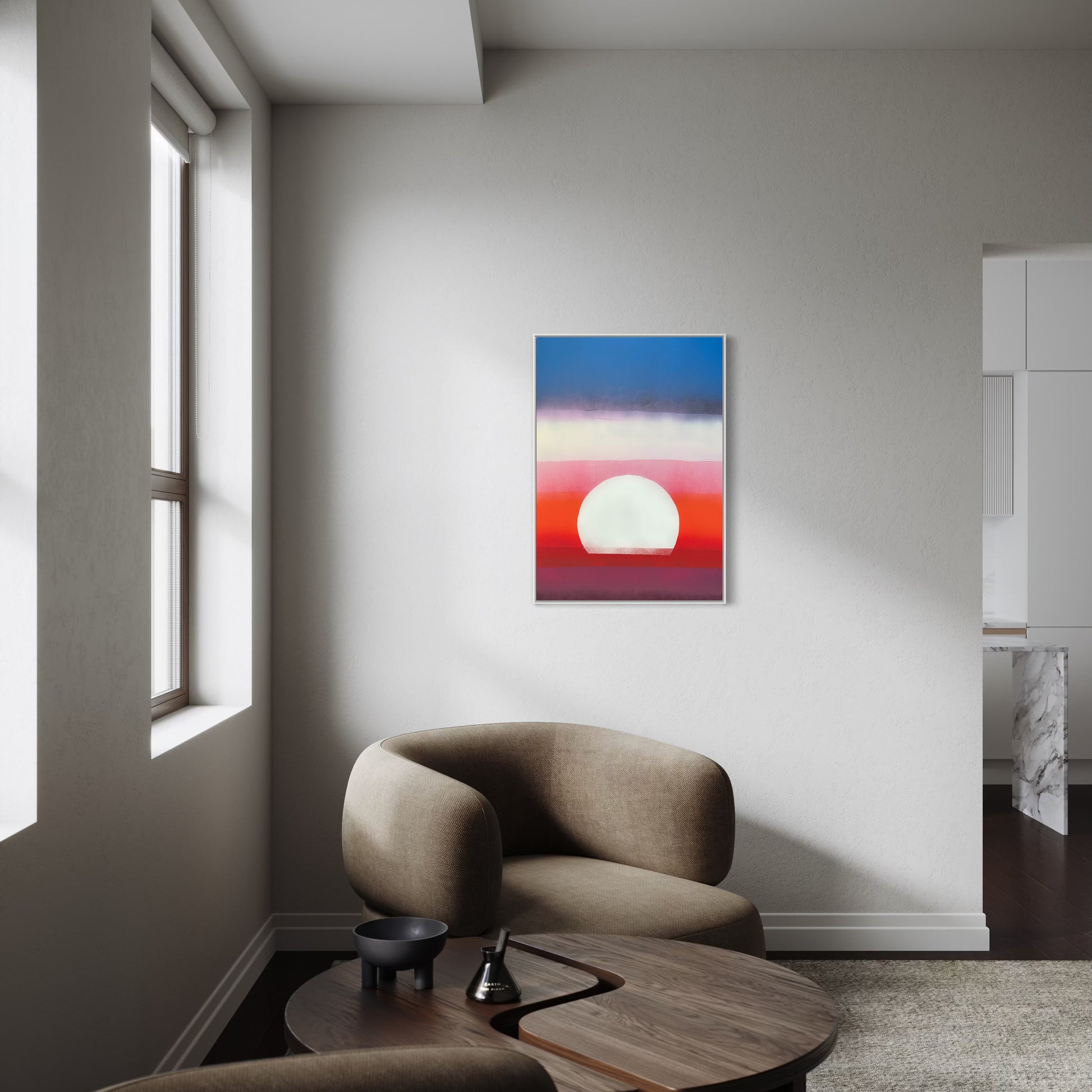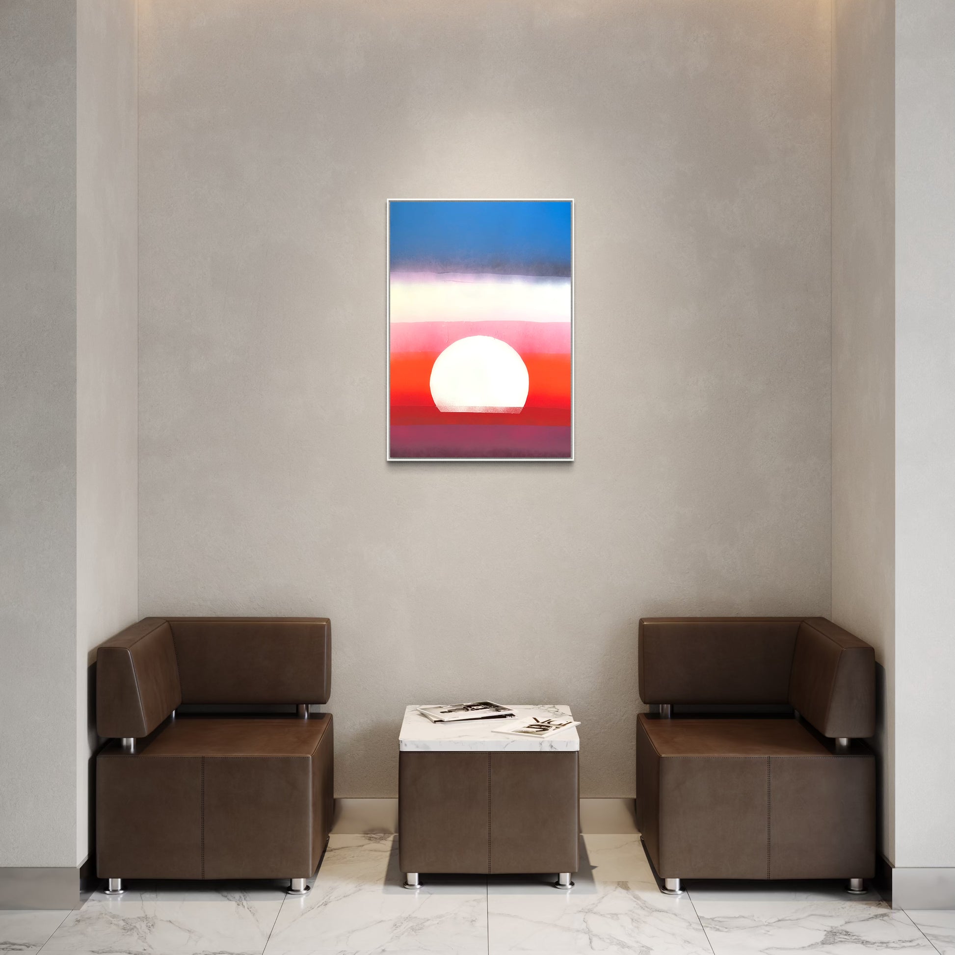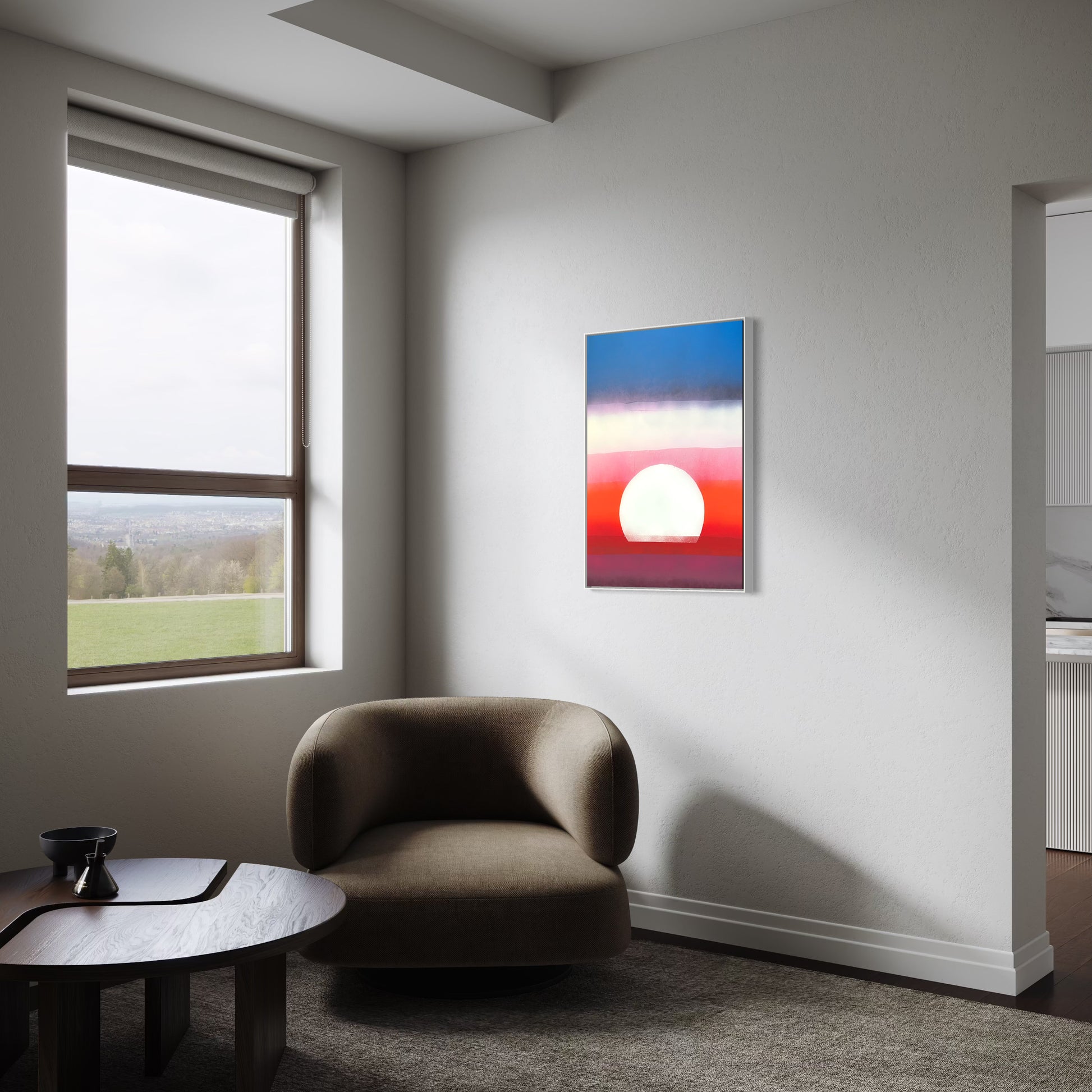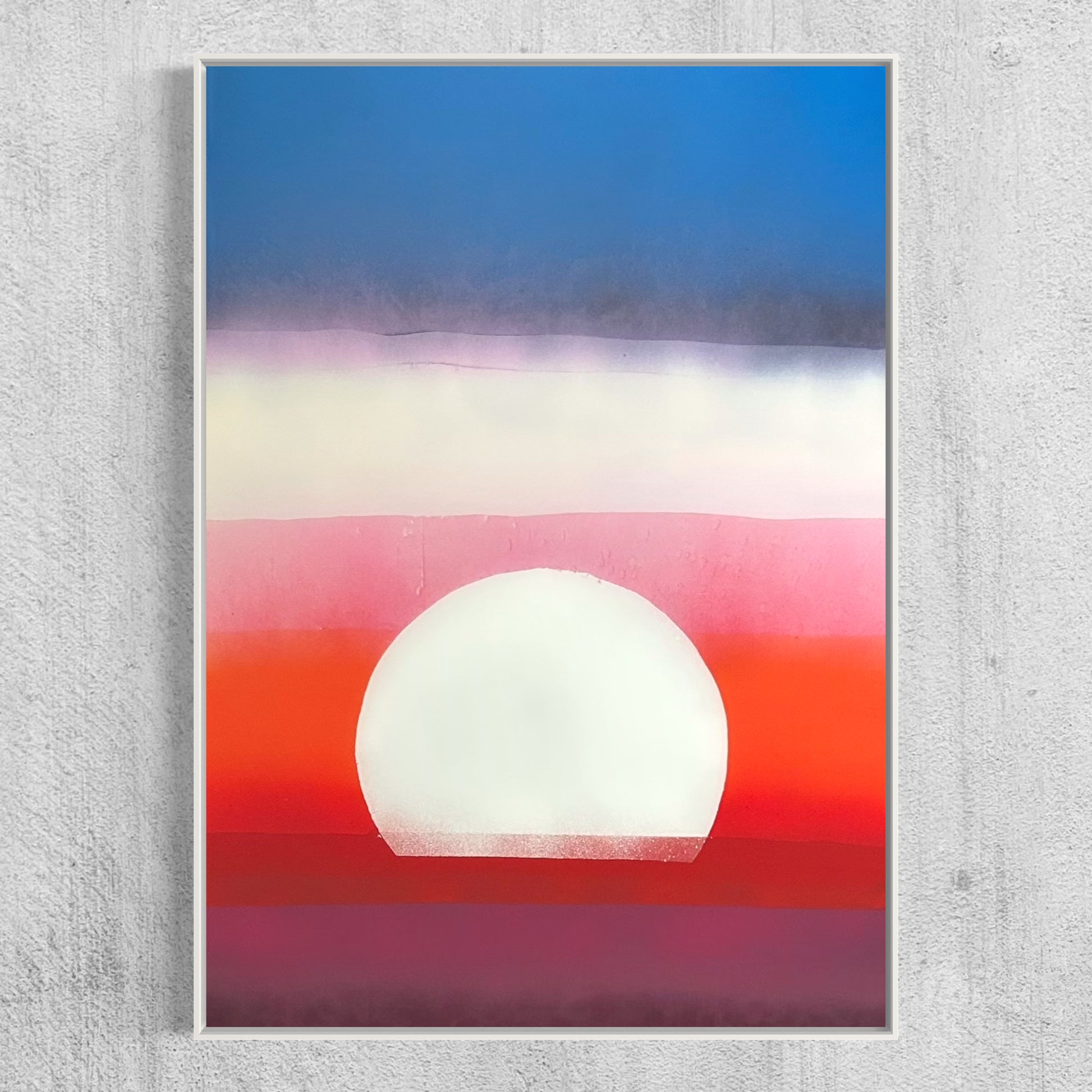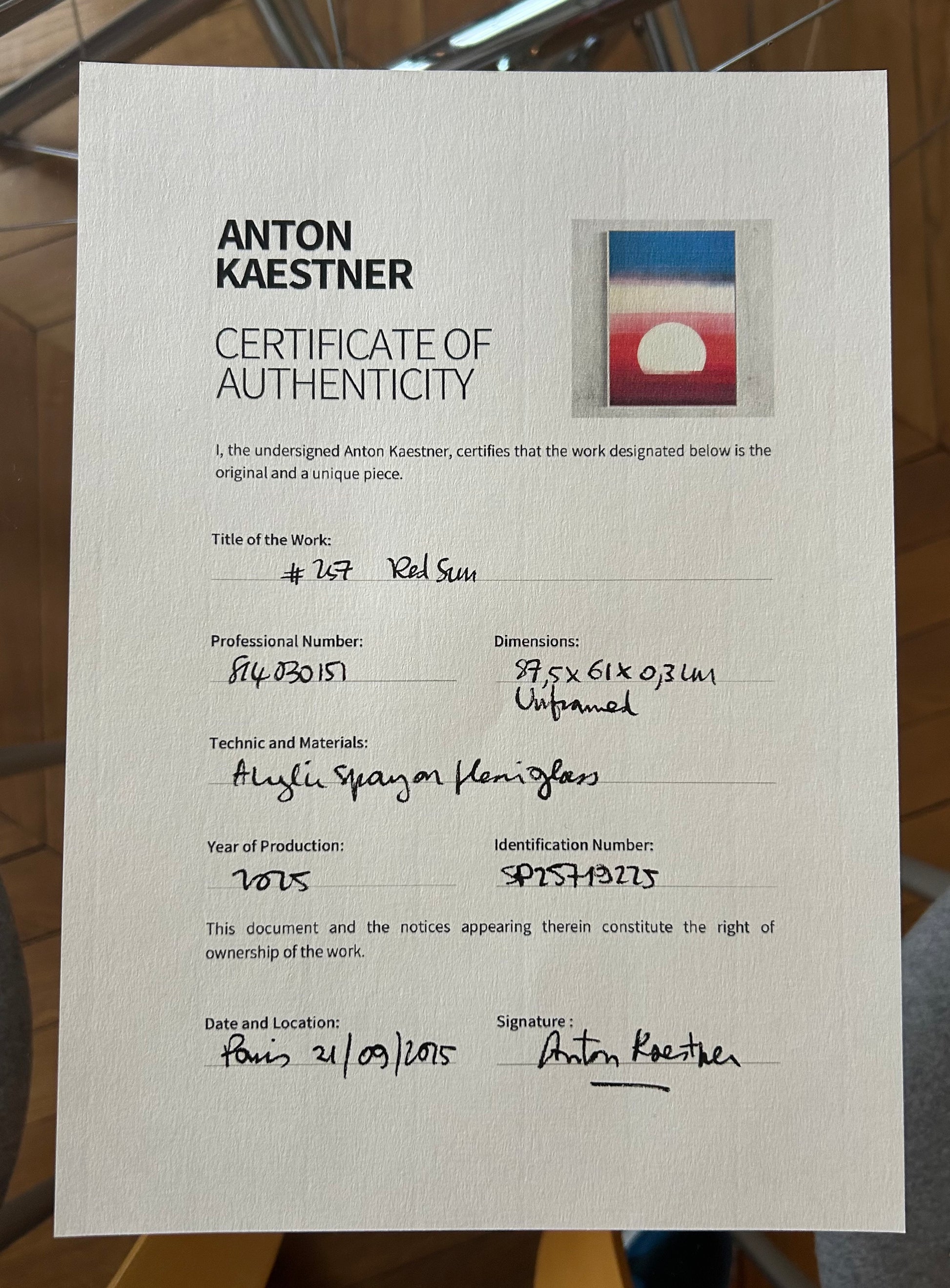 Unique piece, original painting by Anton Kaestner. Acrylic on plexiglass plate 3mm. Inch 34,6 * 24,2 * 1,38 / 87 * 61,5 * 3,5 cm. Nielsen aluminium 34 frame with natural wood N514 finish (inch 0,23 * 1,38 / 0,6 * 3,5 cm) included. Certificate of authenticity. Delivery is covered by insurance.