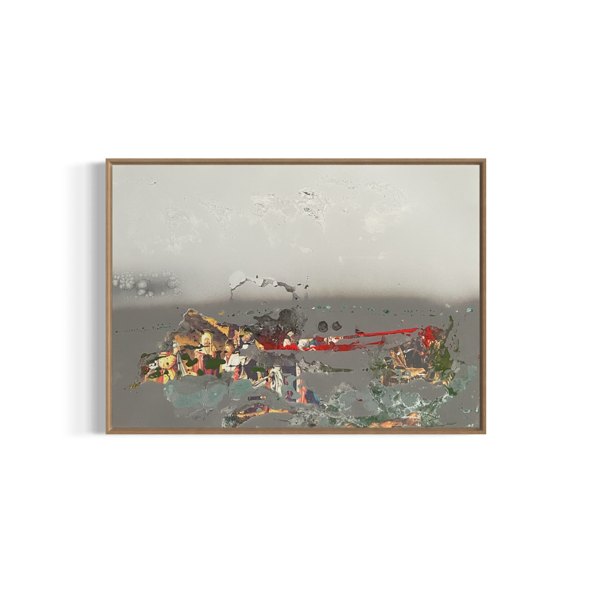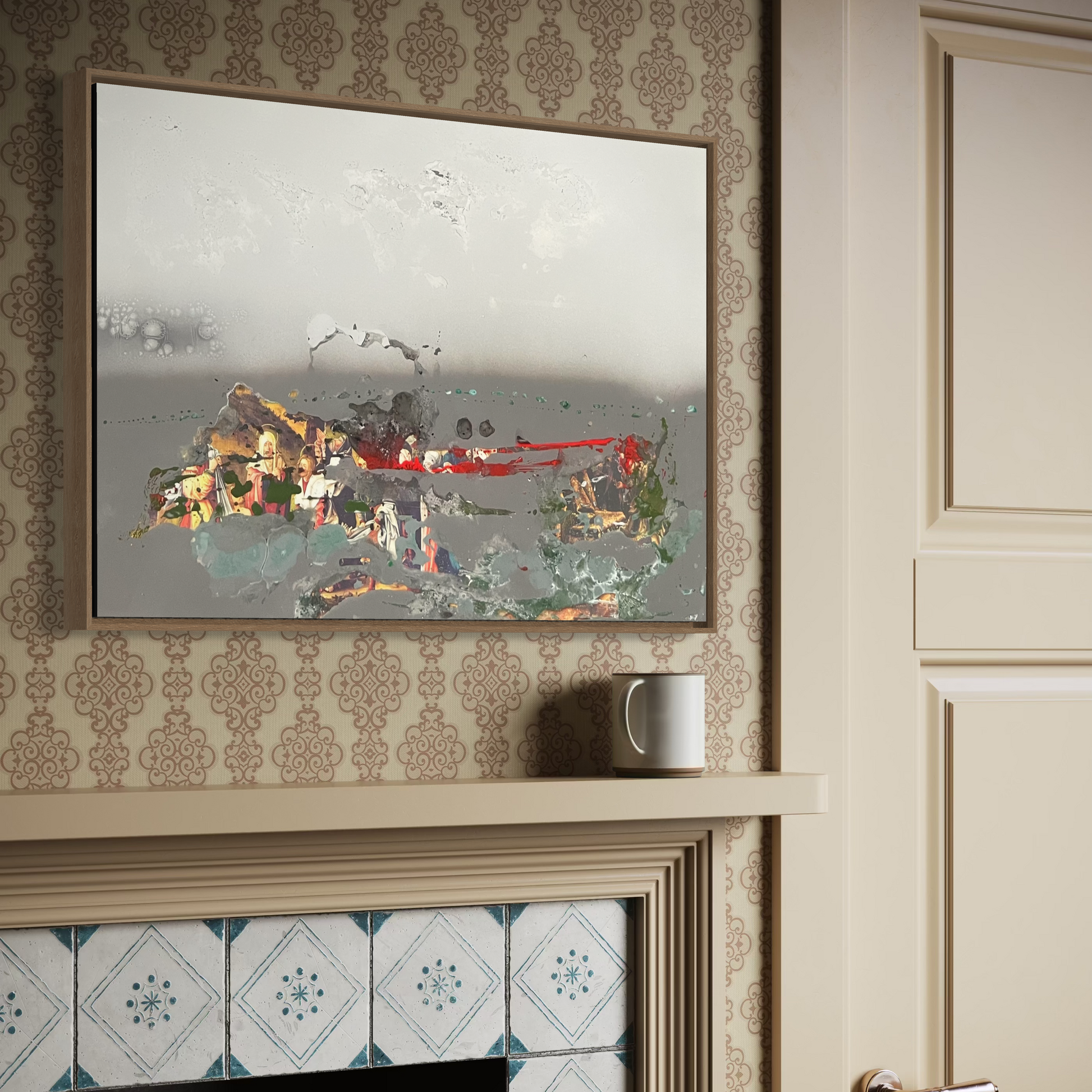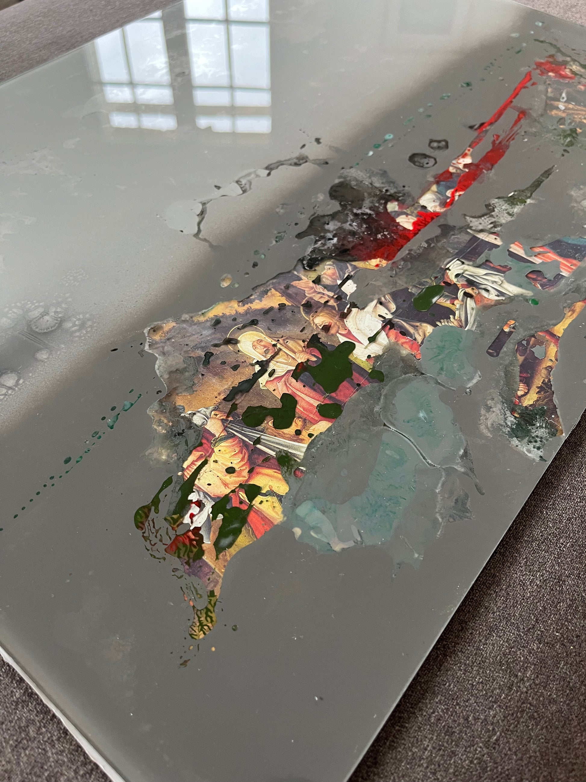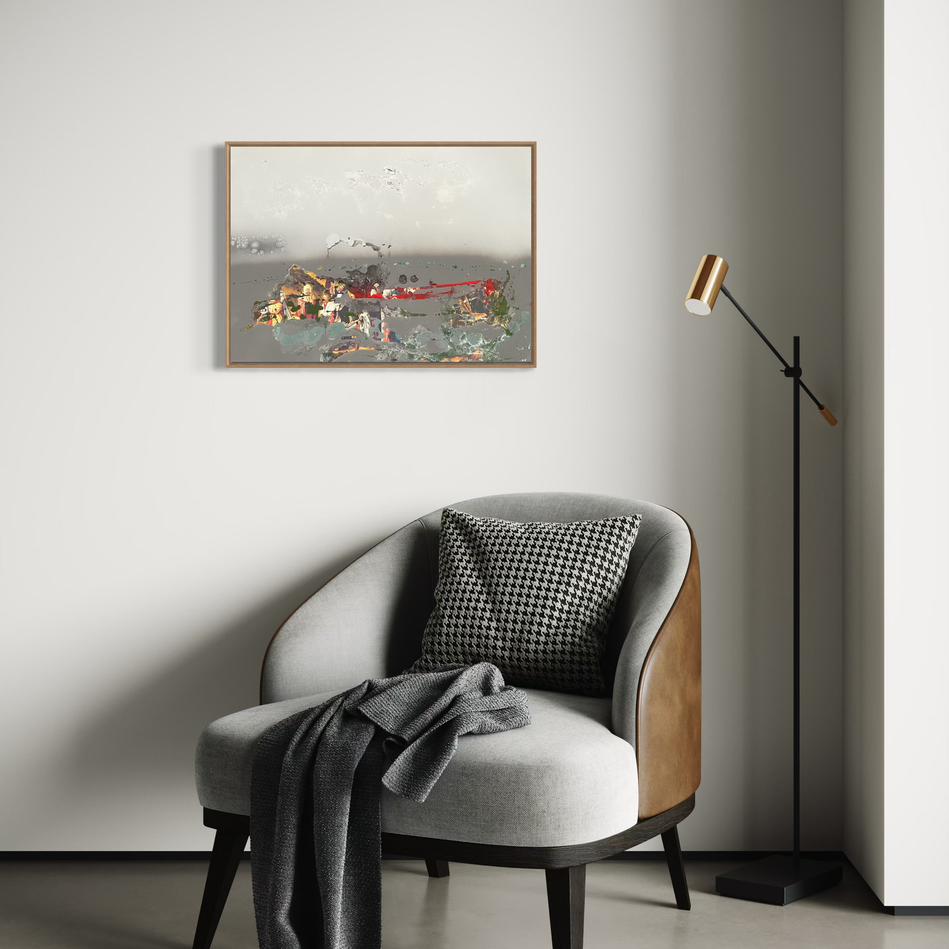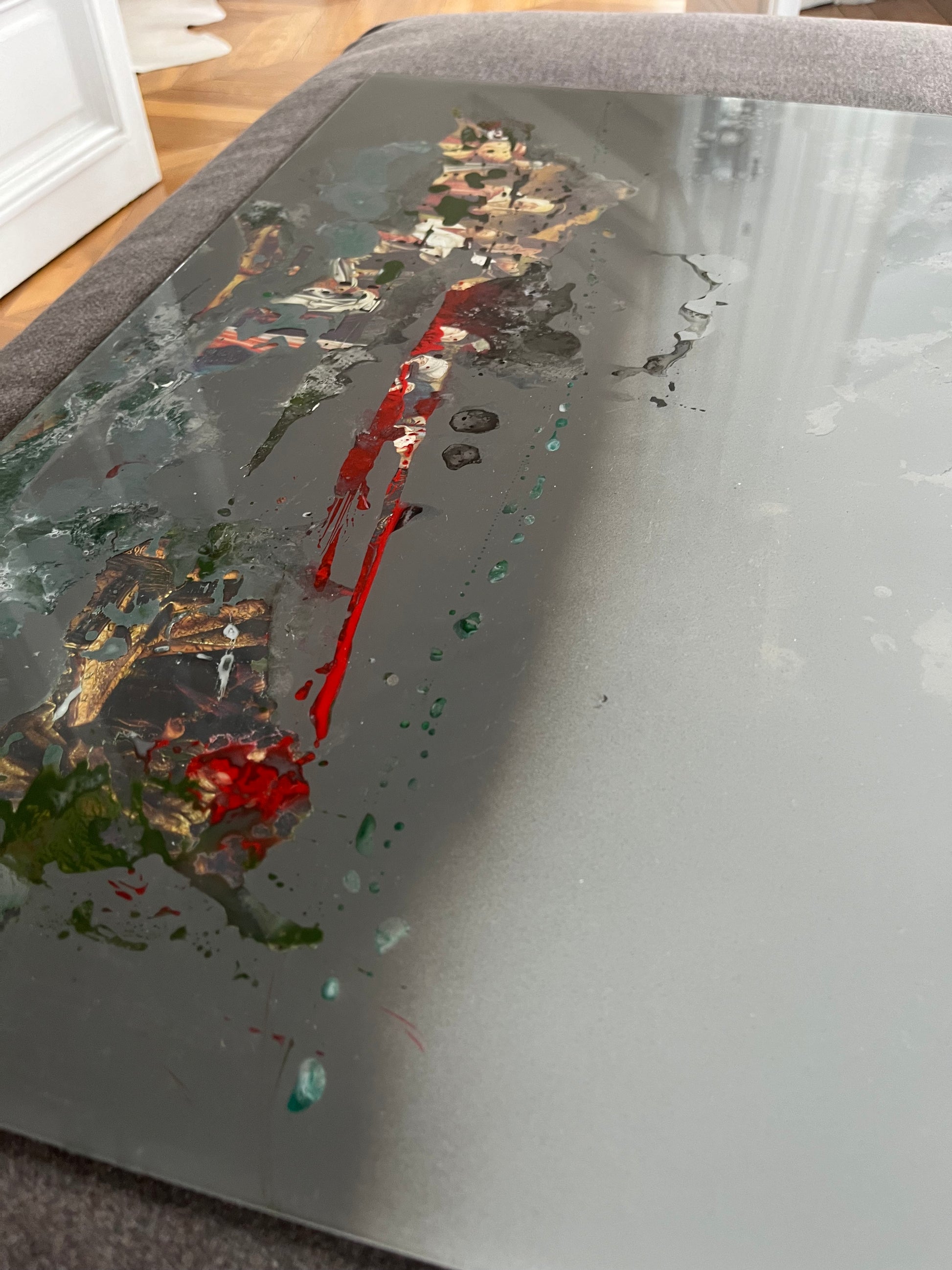 Unique piece, original painting by Anton Kaestner. Acrylic on plexiglass plate 3mm, transparency. Inch 17,3 * 24,2 / 44 * 61,5 * 3 cm. Metallic frame natural wood finish (inch 0,23 * 1,18 / 0,6 * 3 cm) included. Certificate of authenticity. Delivery is covered by insurance.