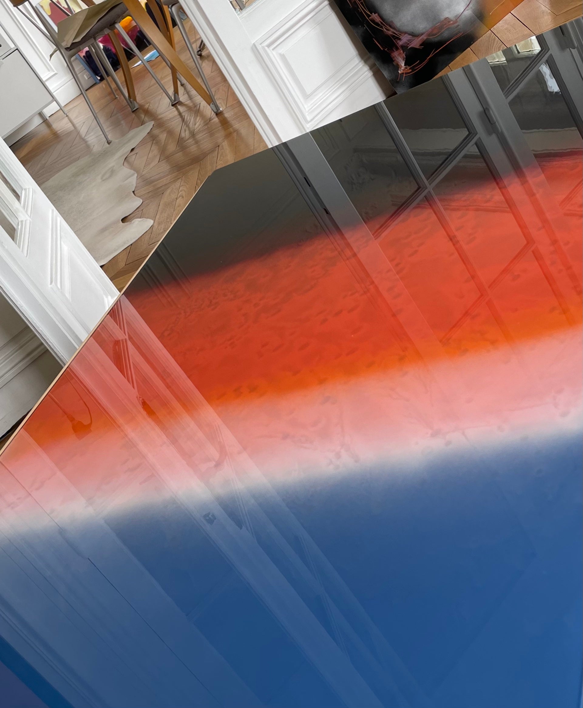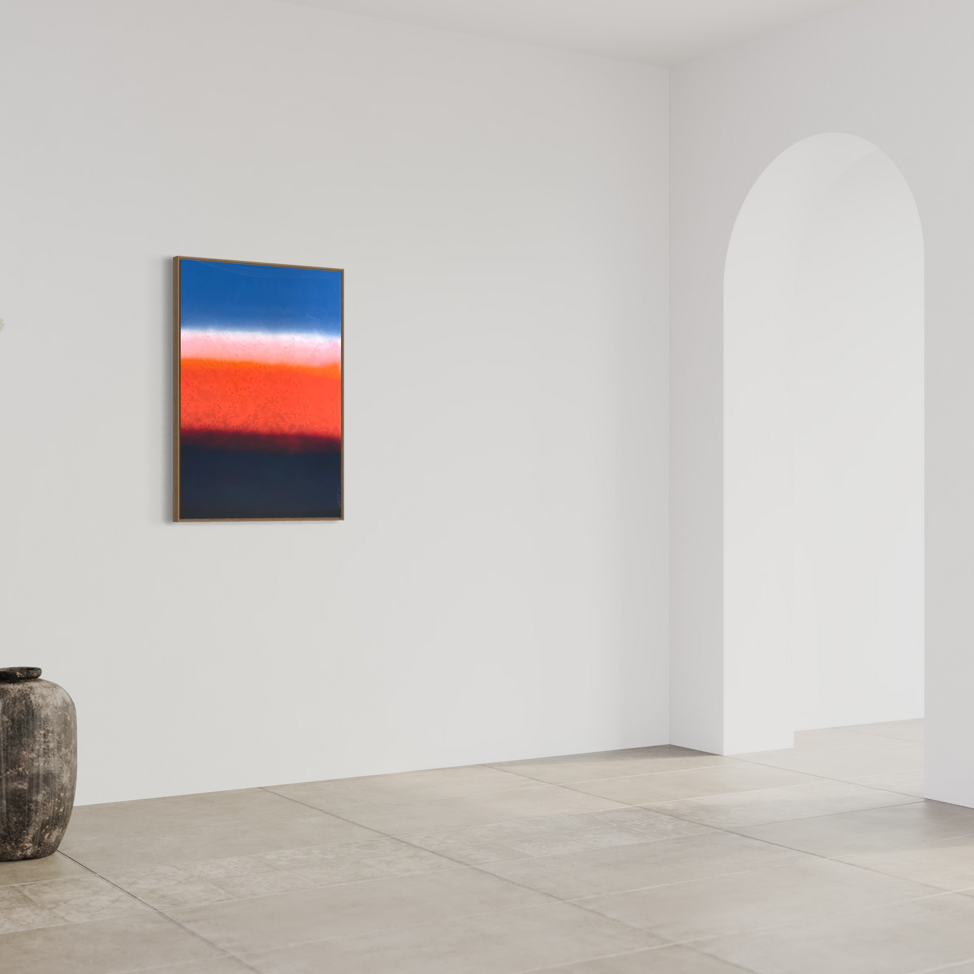Unique piece, original painting by Anton Kaestner. Acrylic on plexiglass plate 3mm. Inch 34,5 * 23,6 * 1,18 / 87 * 60 * 3 cm. Natural wood frame (inch 0,23 * 1,18 / 0,6 * 3 cm) included. Certificate of authenticity. Delivery is covered by insurance.