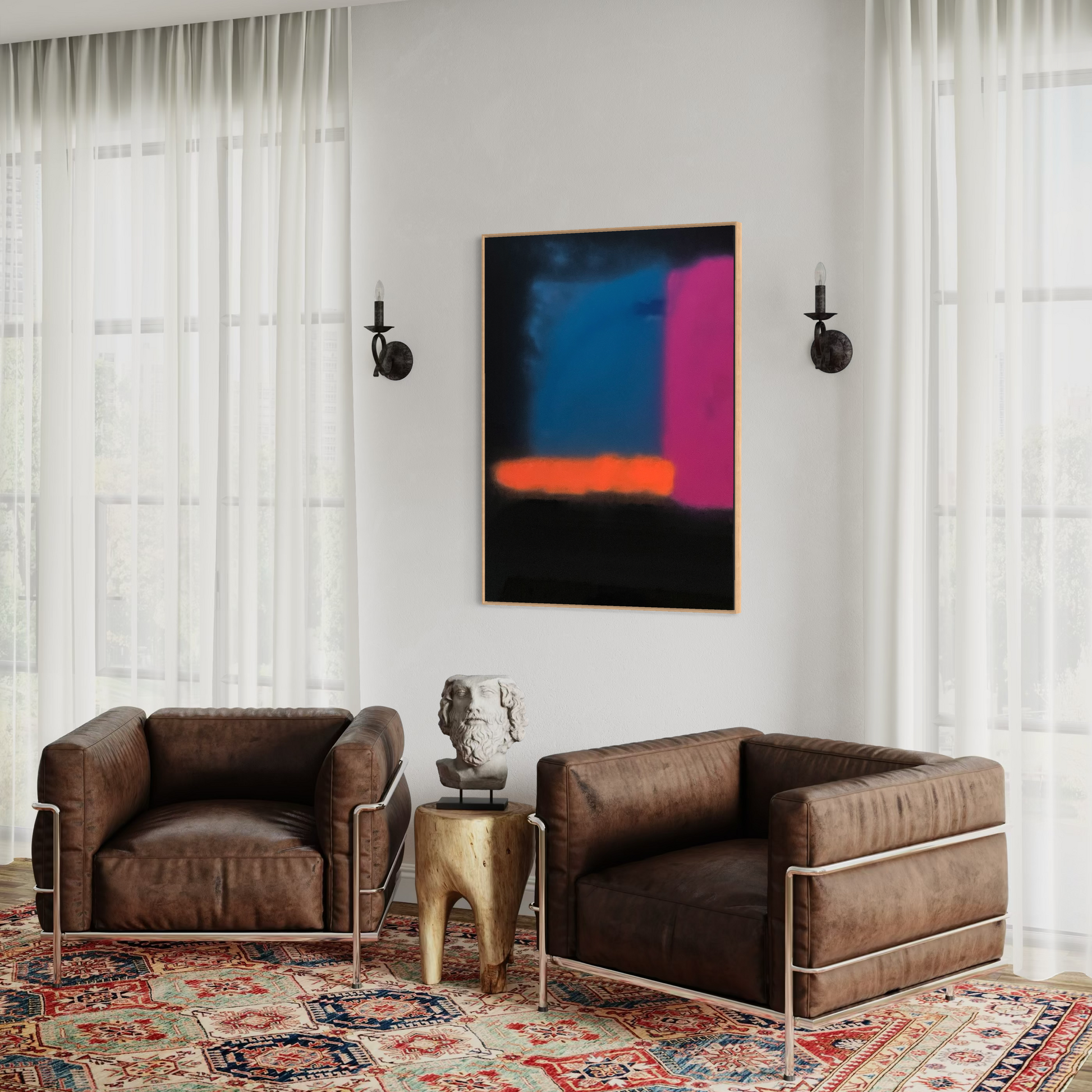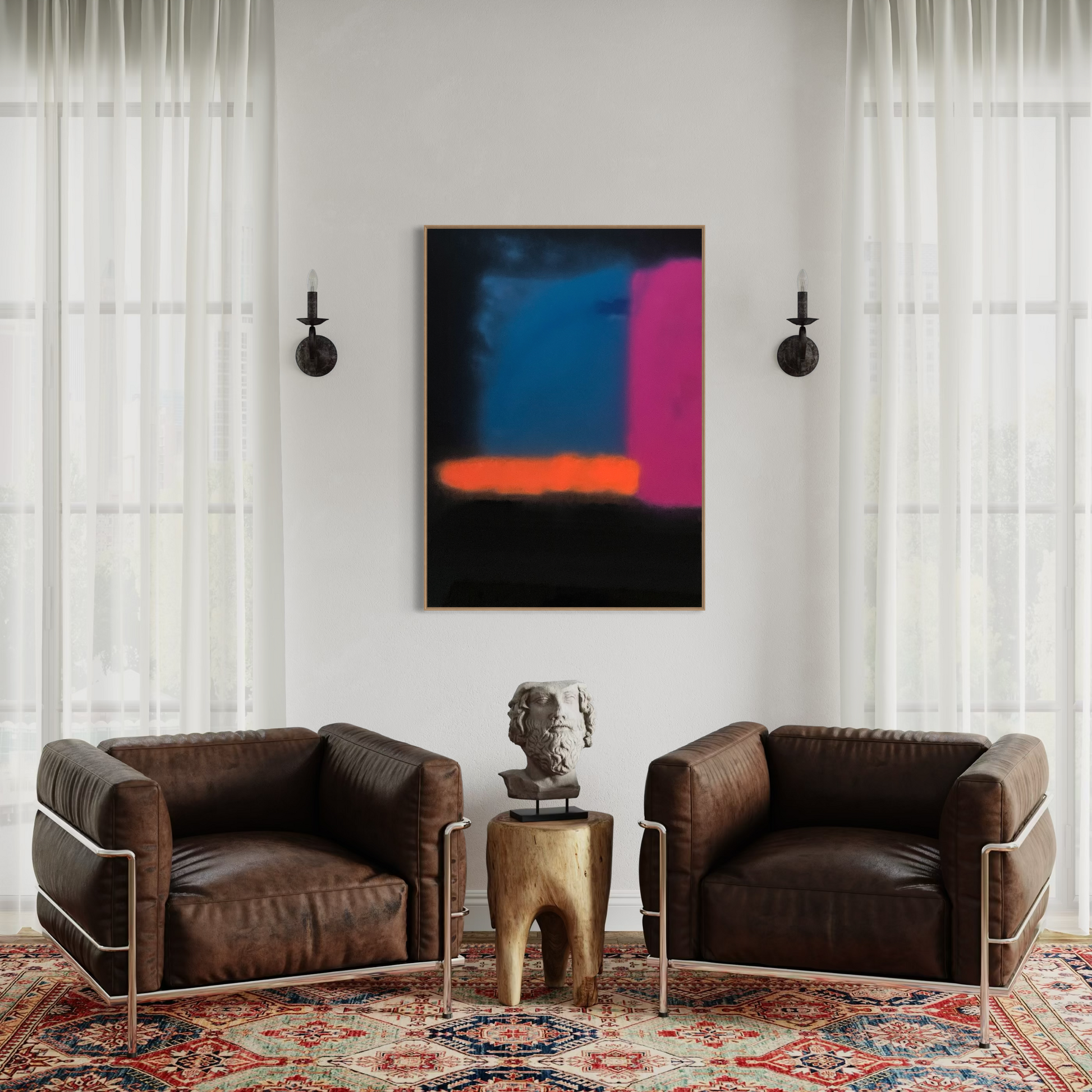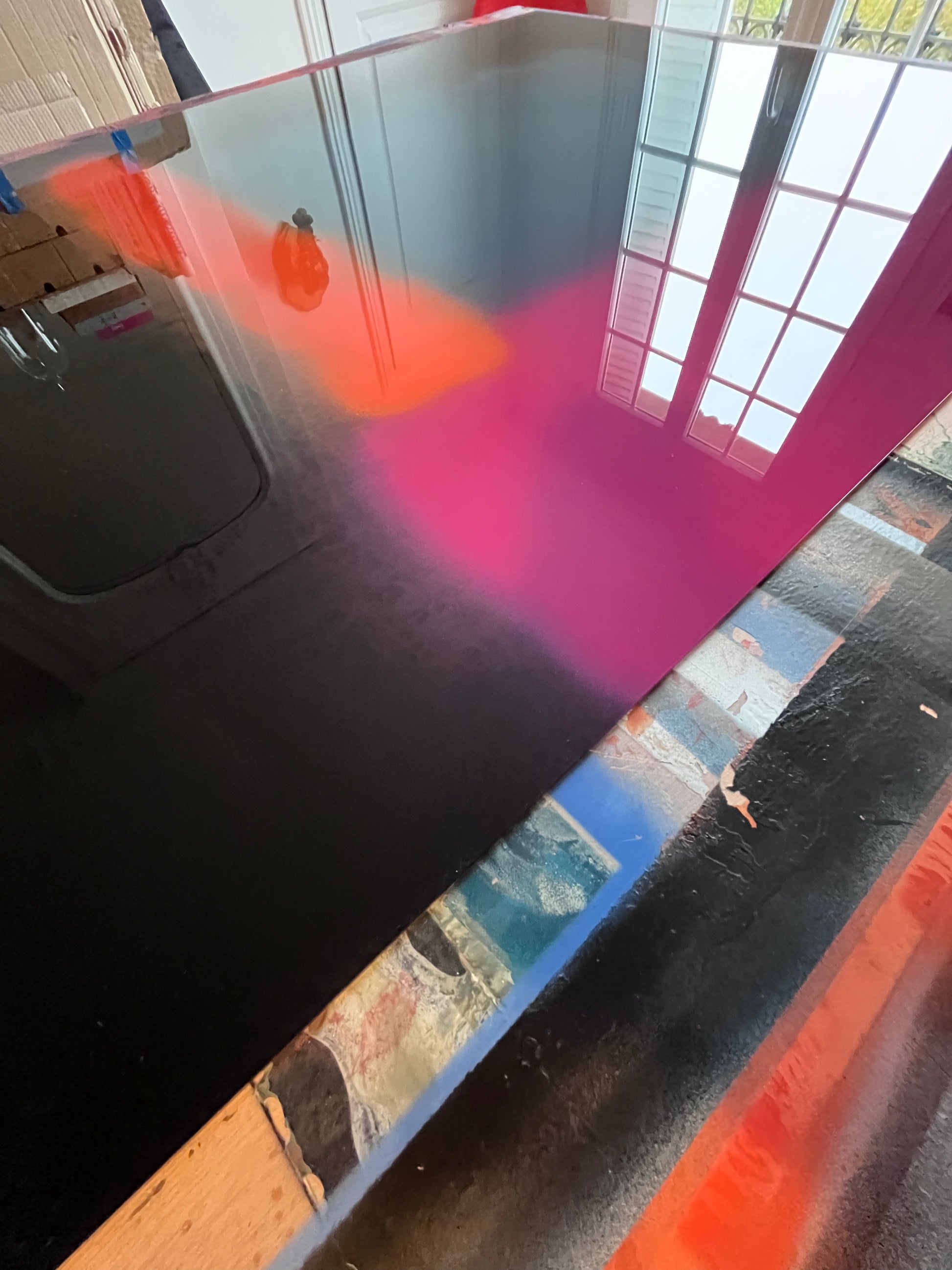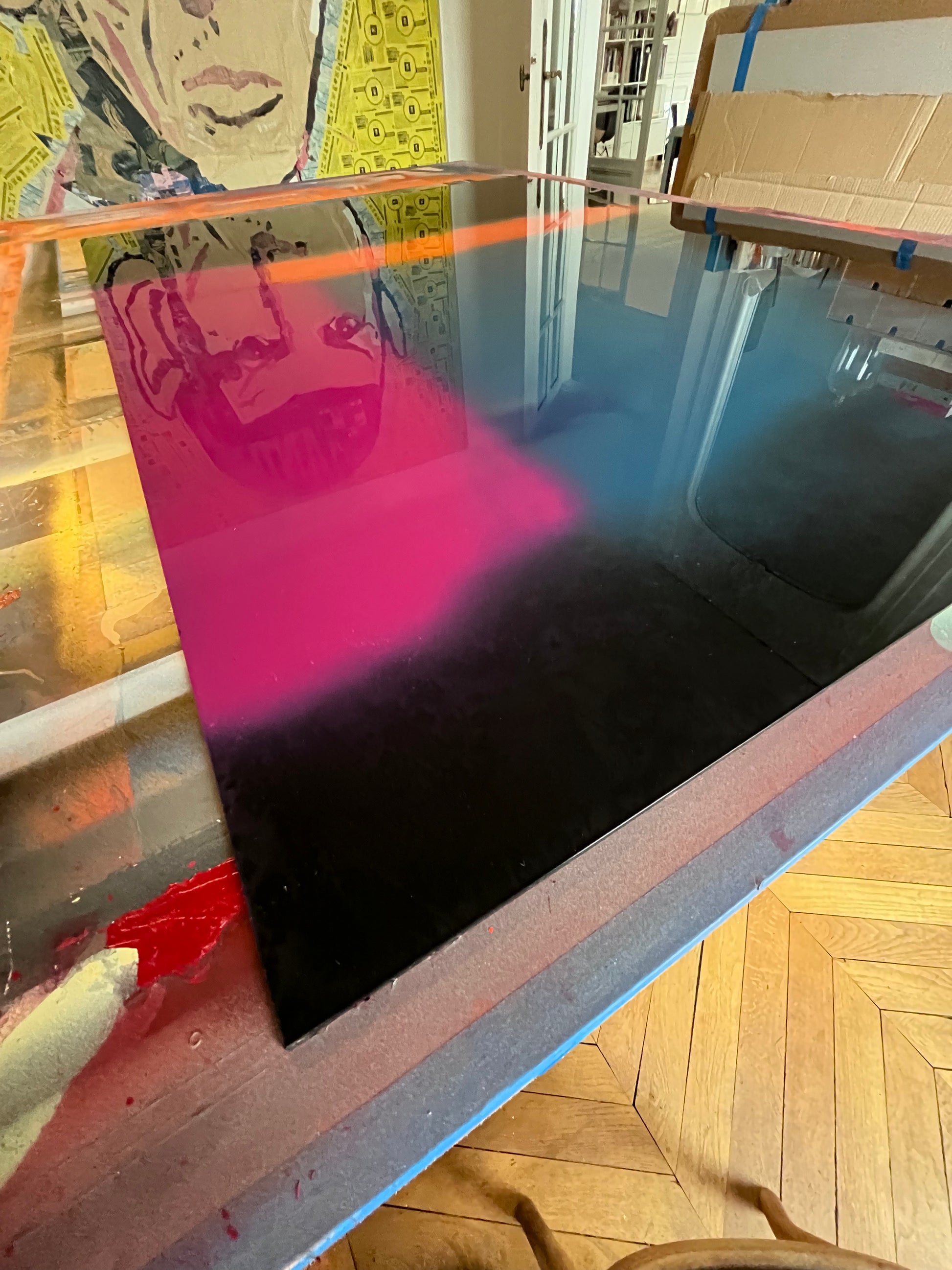 Unique piece, original painting by Anton Kaestner. Acrylic on plexiglass plate 3mm. Inch 47,2 * 34,3 * 1,18 / 120 * 87 * 3 cm. Natural wood frame (inch 0,23 * 1,18 / 0,6 * 3 cm) included. Certificate of authenticity. Delivery is covered by insurance.